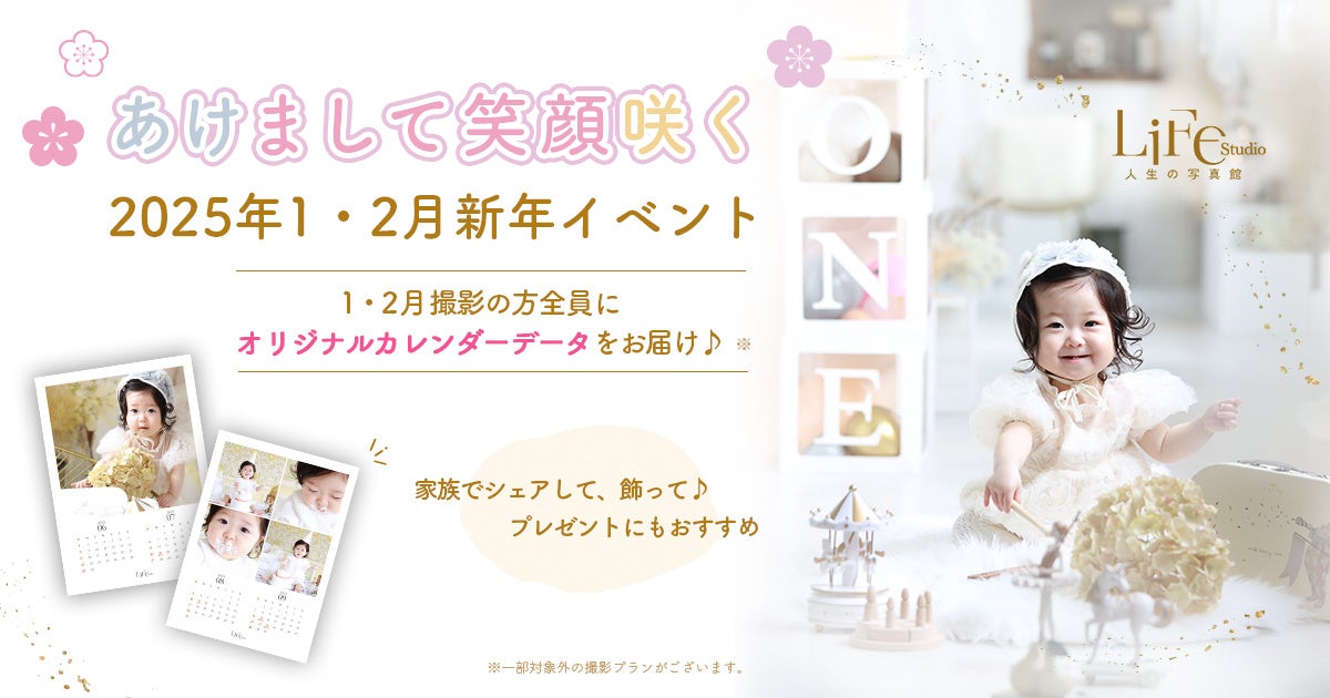 [オリジナルカレンダーデータプレゼント] - 2025年1.2月に撮影された皆様へ、ライフスタジオから新年のご挨拶。2025年も皆様にとって笑顔咲く一年になりますように。