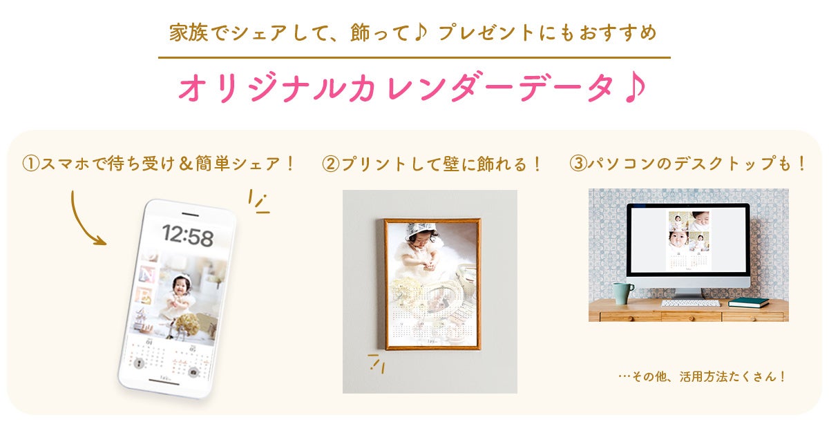 お子さまのデータでデザイン、世界に一つだけのカレンダーデータです。