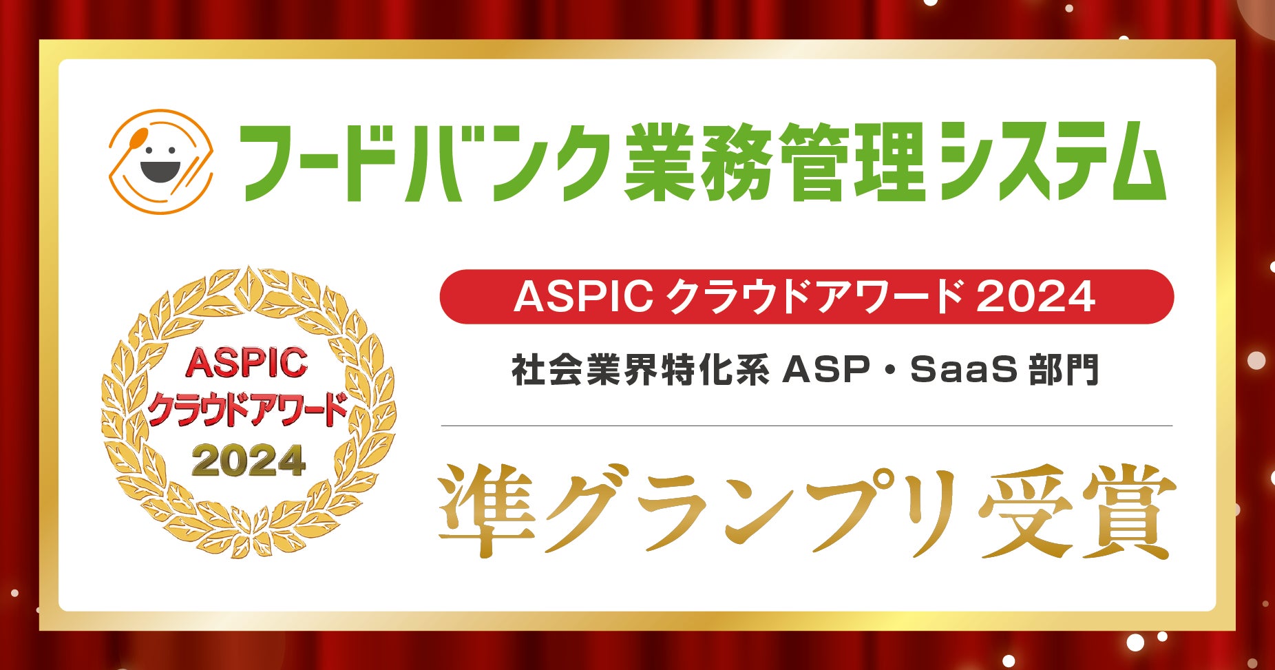 総務省後援「第18回 ASPICクラウドアワード2024」で『フードバンク業務管理システム』が「社会業界特化系 ASP・SaaS 部門」準グランプリを受賞
