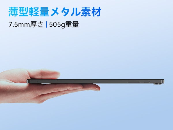 Hpad5は、エレガントなグレーとブラックの外観で、オールメタルの一体型デザインを特徴としています。狭額縁で、底部はブラックのシルクスクリーン、背面はマットなブルーで、洗練された感覚を醸し出しています。10.51インチの大画面にもかかわらず、重量はわずか505gで、厚さは薄く7.5mmです。スムーズで平らなボディは、手軽に持ち運びできるポータブルバッグに簡単に収まります。