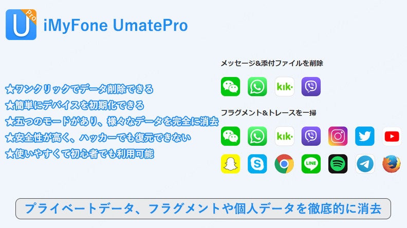 世界中で200+の権威メディアが推奨されたソフトウェア開発会社iMyFoneは令和6年9月20日(金)より、人気があるiOS・Androidデータ消去「Umate Pro」V6.0.7をリリースしました!いくつかのバグを修復し、ユーザーエクスペリエンスも最適化しました。写真・大容量ファイルなどのデータを完全に消去できます。また、10%OFFクーポンも配布中です。