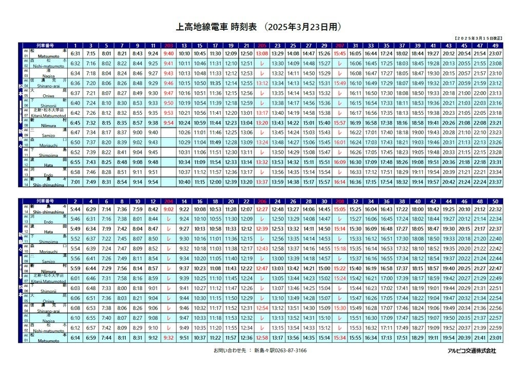 7.お問合せ先 新島々駅 0263-87-3166 受付時間 9:00~17:00