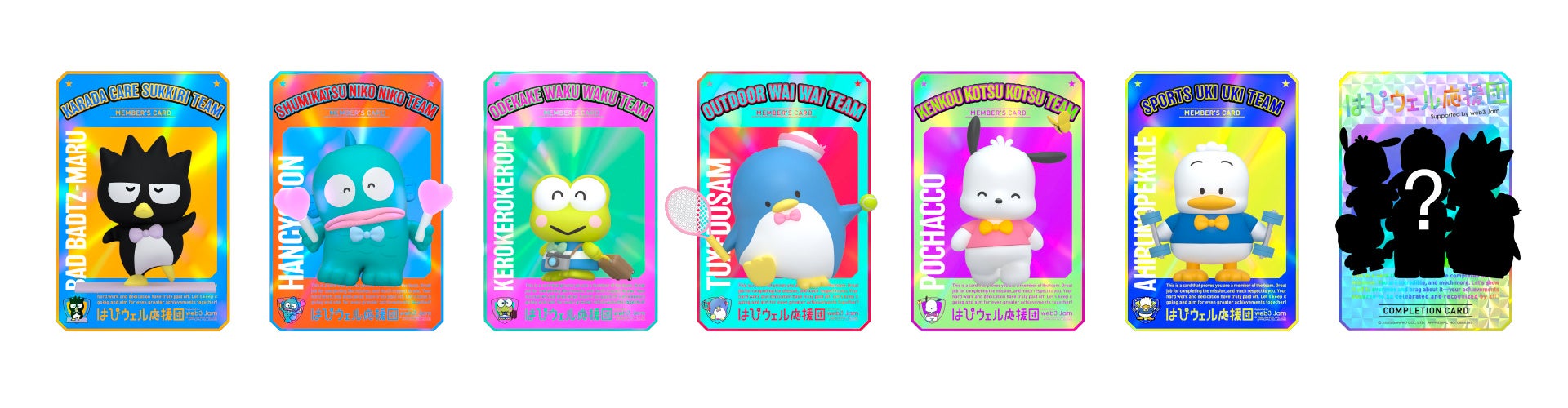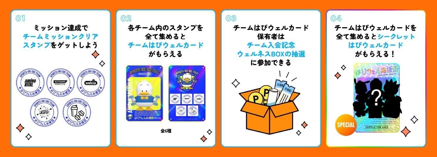 全6種類(チーム)の「チームはぴウェルカード」を集めると、スペシャルな「シークレットはぴウェルカード」が獲得できます。