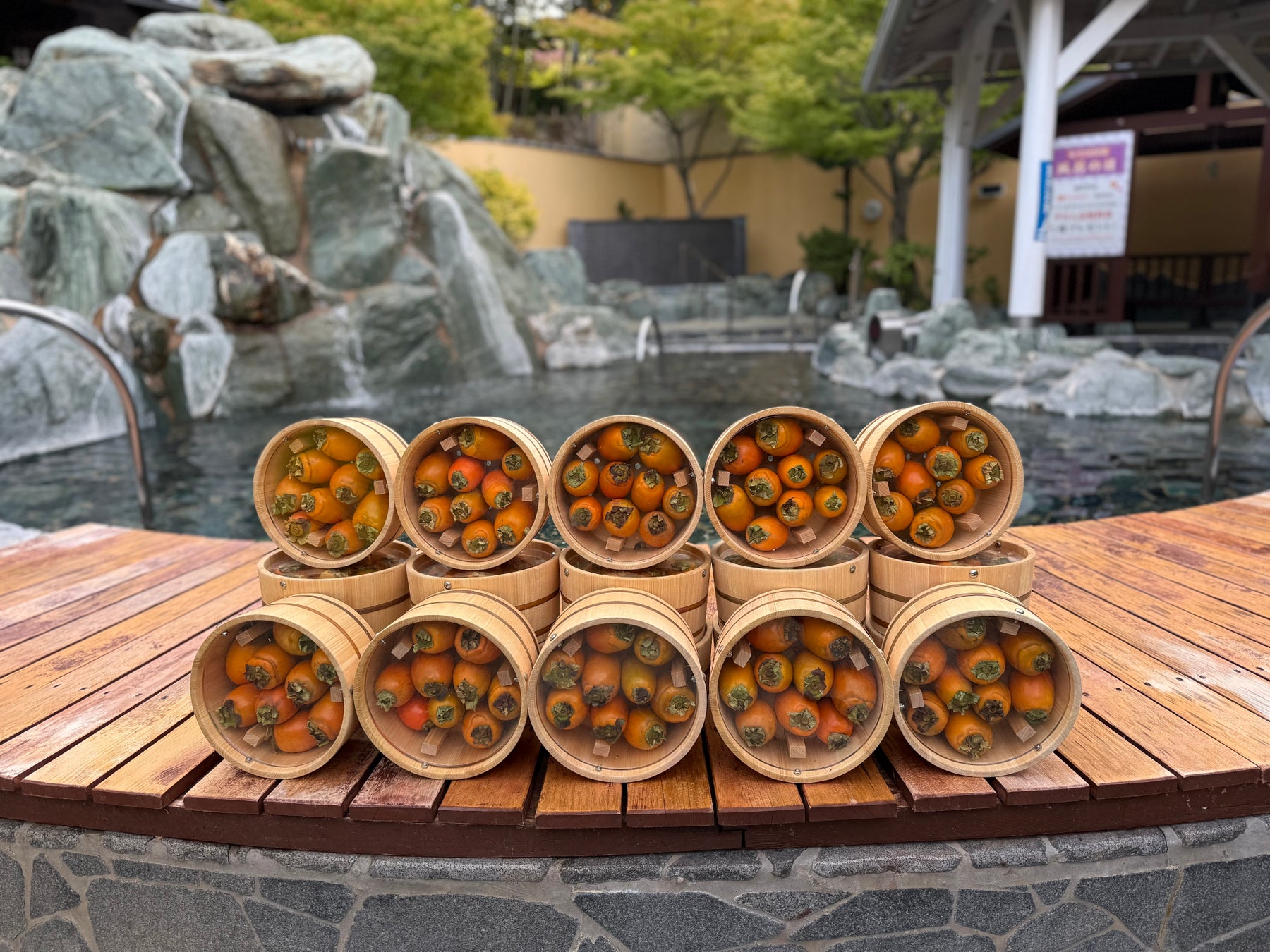 このプロジェクトでは、廃棄予定だった筆柿を救い出し、新たな銭湯体験に変えることで、地域の食料ロス削減に取り組みます。イベント内容として、1日合計20キロの筆柿を露天風呂に浮かべた「筆柿風呂」を提供し、季節の移ろいを視覚と香りでお楽しみいただけます。また、柿の葉を使用した「柿の葉塩サウナ」でリフレッシュし、食事処では筆柿ジュレを使った贅沢な「筆柿ジュレソフトクリーム」をご賞味ください。さらに、お土産処で開催する「筆柿詰め放題イベント」では、地域の恵みを直接持ち帰りいただける機会をご用意しています。