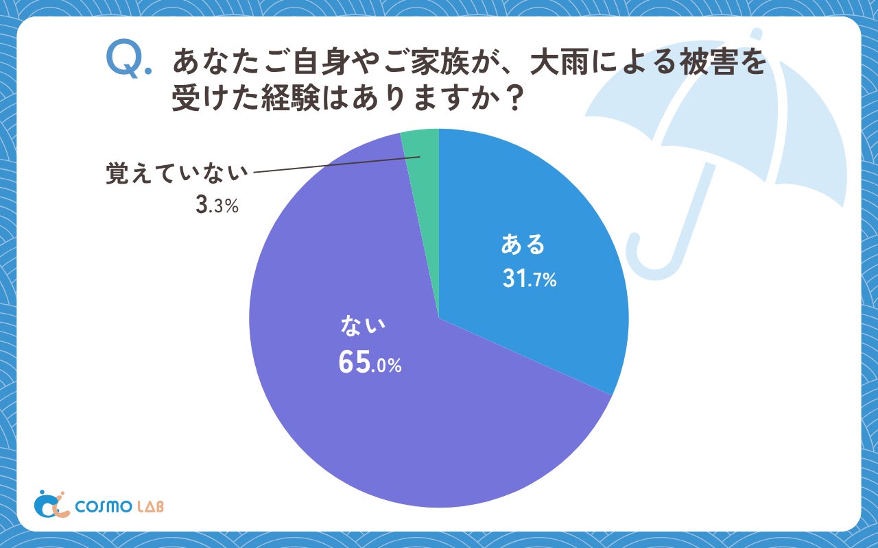 1:あなたご自身やご家族が、大雨による被害を受けた経験はありますか?