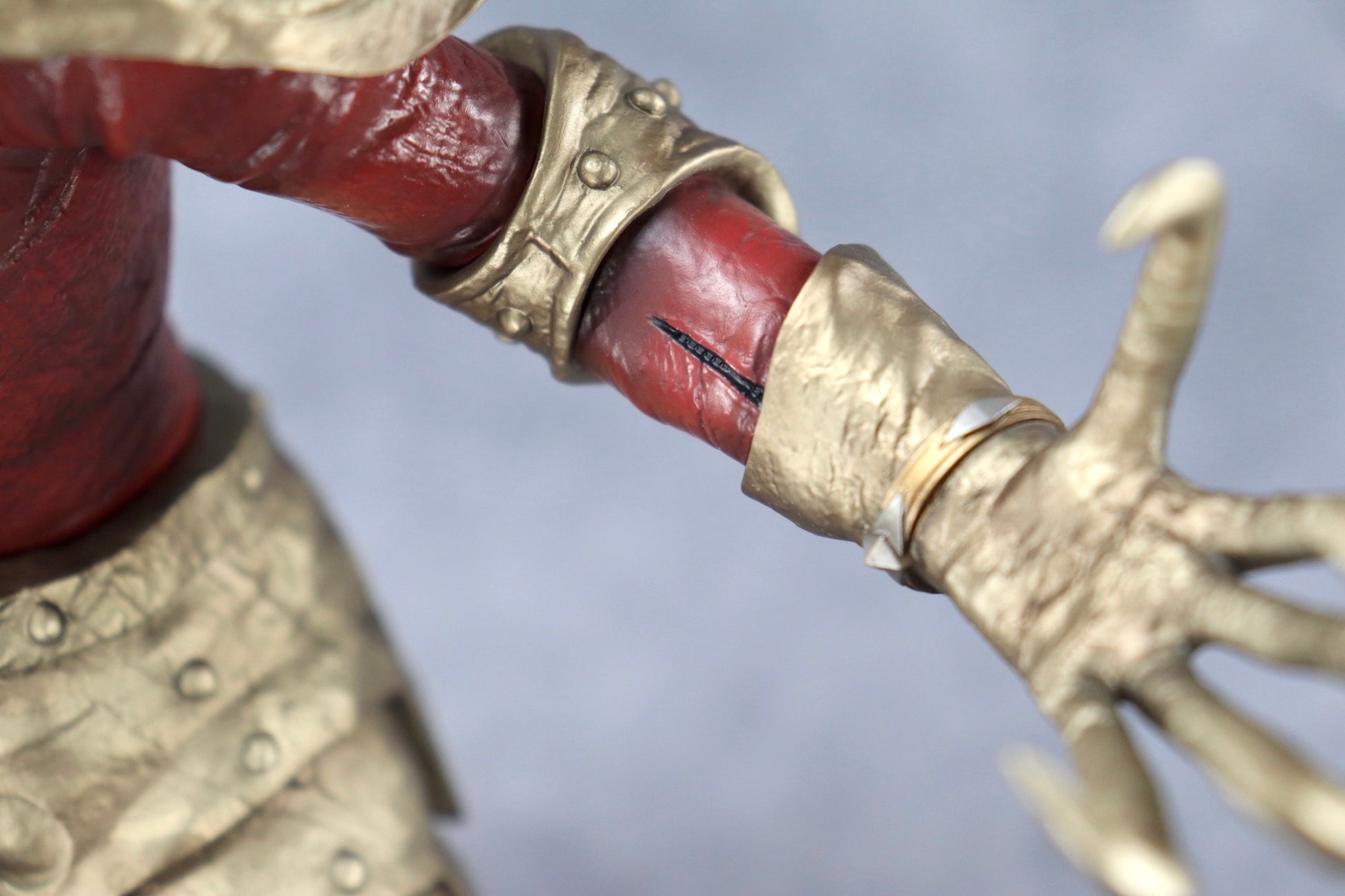 左腕に比べて、武器を持つためか少し布状になっている、右腕の荒いテクスチャを再現しているも特徴です。