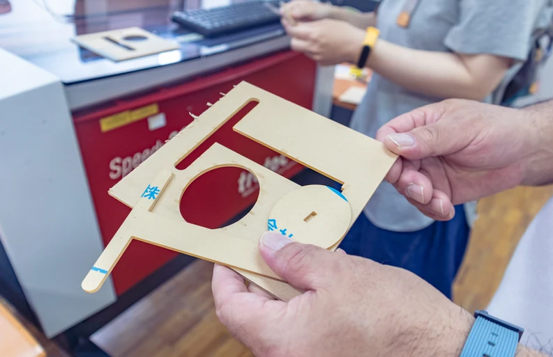 ・小型レーザー加工機を使ってキーホルダーを作る実演