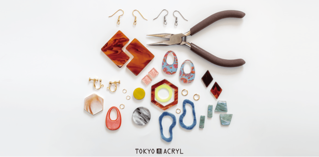 アクリルパーツを組み合わせてピアス(イヤリング)を作るワークショップです。