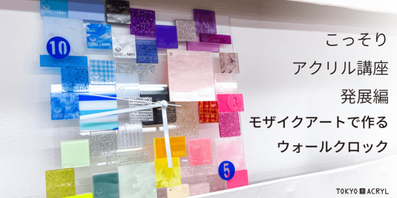 TOKYO ACRYLのサンプルチップを貼り合わせて壁掛け時計を作ります。