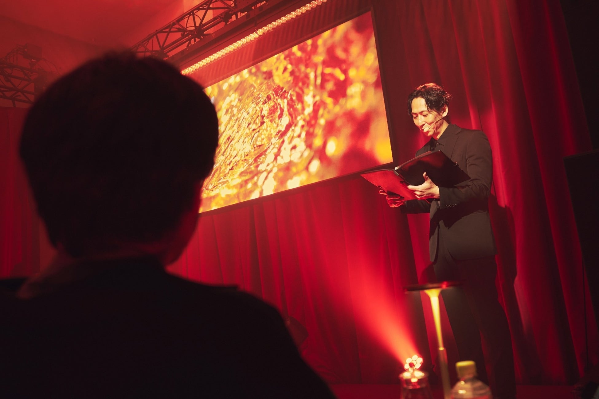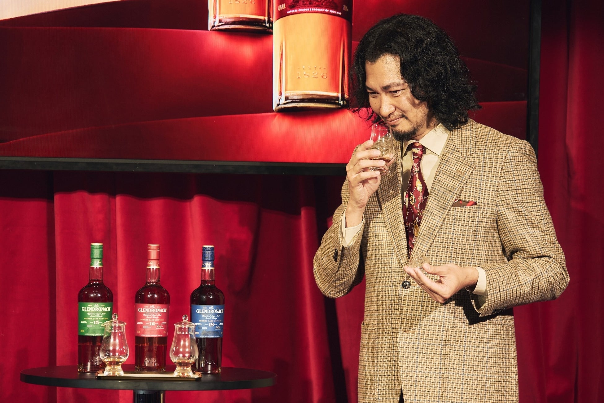 さらに、ステージではバーテンダーの吉田氏による解説とともに、青木さんにグレンドロナック12年/15年/18年をテイスティングいただきました。長年ウイスキーを愛好する青木さんも実際に3つのグレンドロナックを飲み比べるのは初めてといい、青木さんは「とても幸せな気持ちになりました。時間の感覚がなくなるぐらい深い余韻が心地よく、ずっと楽しんでいたい感覚。特に18年はウイスキーの熟成を通じて、ここまで到達するんだという骨太さを感じた。甘みはどんどん変化していくし、とてもおもしろい。味わうってこんなに幸せなことなんだと感じさせてくれるウイスキーだと感じました。」とコメント。吉田氏は「12年、15年、18年それぞれ異なる表情と熟成による変化を是非お楽しみください。お好みの一杯を探す楽しさを体験ください。」とグレンドロナックの多面的な魅力を表現しました。