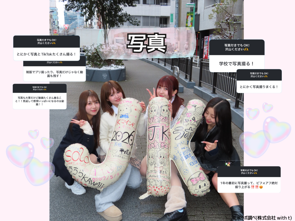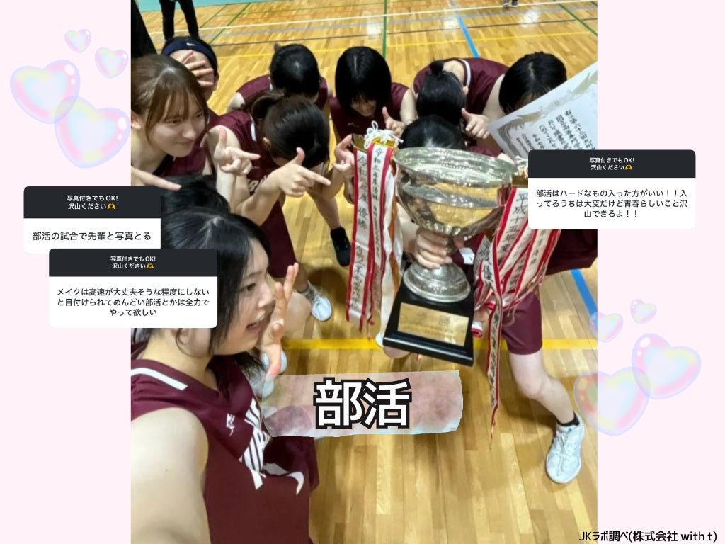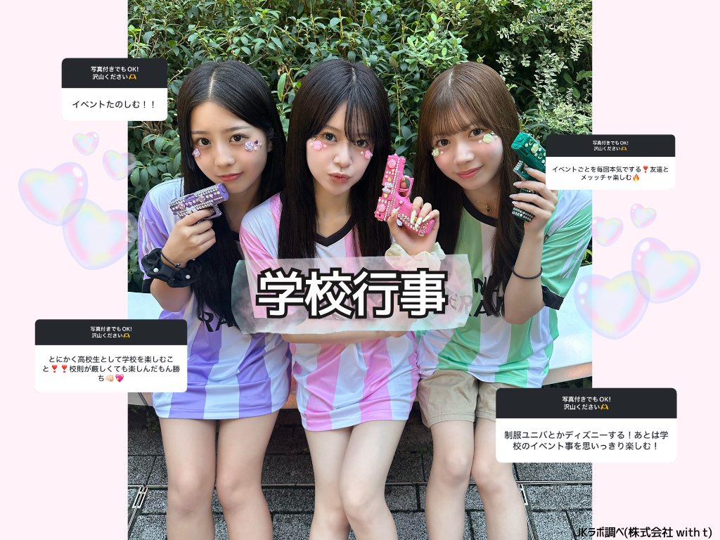 ティーン向けエンタテイメント事業を展開する株式会社with t(本社:東京都渋谷区、代表取締役社長:宮城啓太)が運営する、女子高生の「最旬トレンド」を発信・分析するメディア&シンクタンク「女子高生ラボ」は、全国の現役女子高生を対象に「高校生活のうちにやっておくべきこと」に関する実態調査を実施しました。