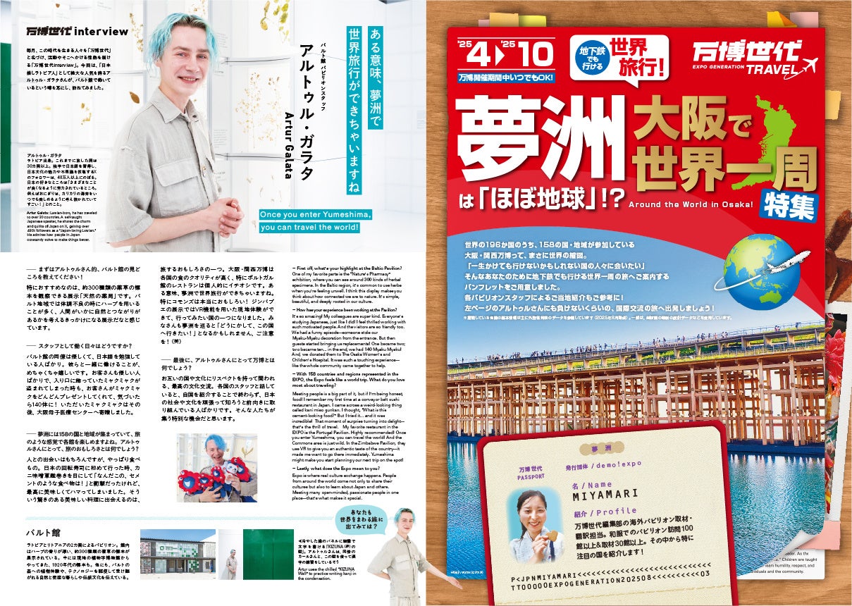 今号の表紙は、ラトビア出身者でバルトパビリオンスタッフのアルトゥル・ガラタさん。 独学で学んだ流暢な日本語を駆使して日本文化の魅力や不思議を投稿するXのフォロワーは48万人以上にのぼり、万博世代の大人気インフルエンサーです。巻頭インタビューでは30カ国以上旅をしてきたアルトゥルさんがバルト館での日々や旅の醍醐味など語っています。