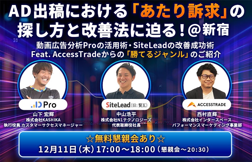 【参加費無料】動画広告、LP改善、アフィリエイトの最新事例を公開!Webマーケティングの「勝ち筋」を解説する3社合同セミナー&交流会を12月11日に開催