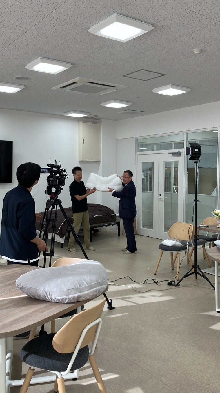 フジテレビ「チャンハウス」でタレントの『南原清隆』さんにも好評を頂きました『3PEACe PILLOW』の企画・開発元、富士ベッド工業のまくら製造工場"まくランド"に日活様の撮影が入りました!