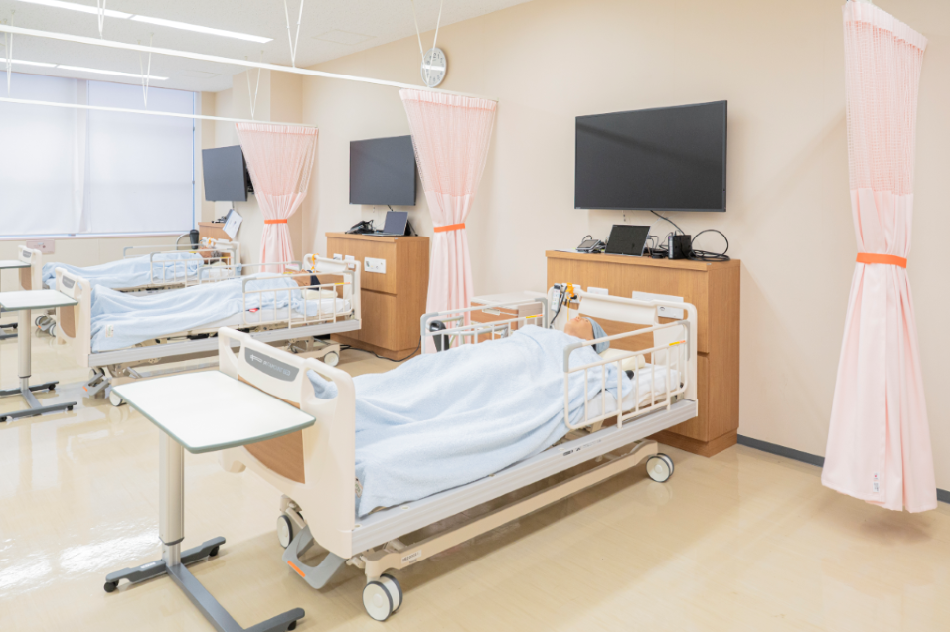 最新鋭の設備を備えた看護シミュレーションルームでは、病院さながらの演習授業が展開され、実習に備えて実践力を高めます。リーダーシップ開発プログラムを通じてチーム医療で活躍できる資質も身につけます。