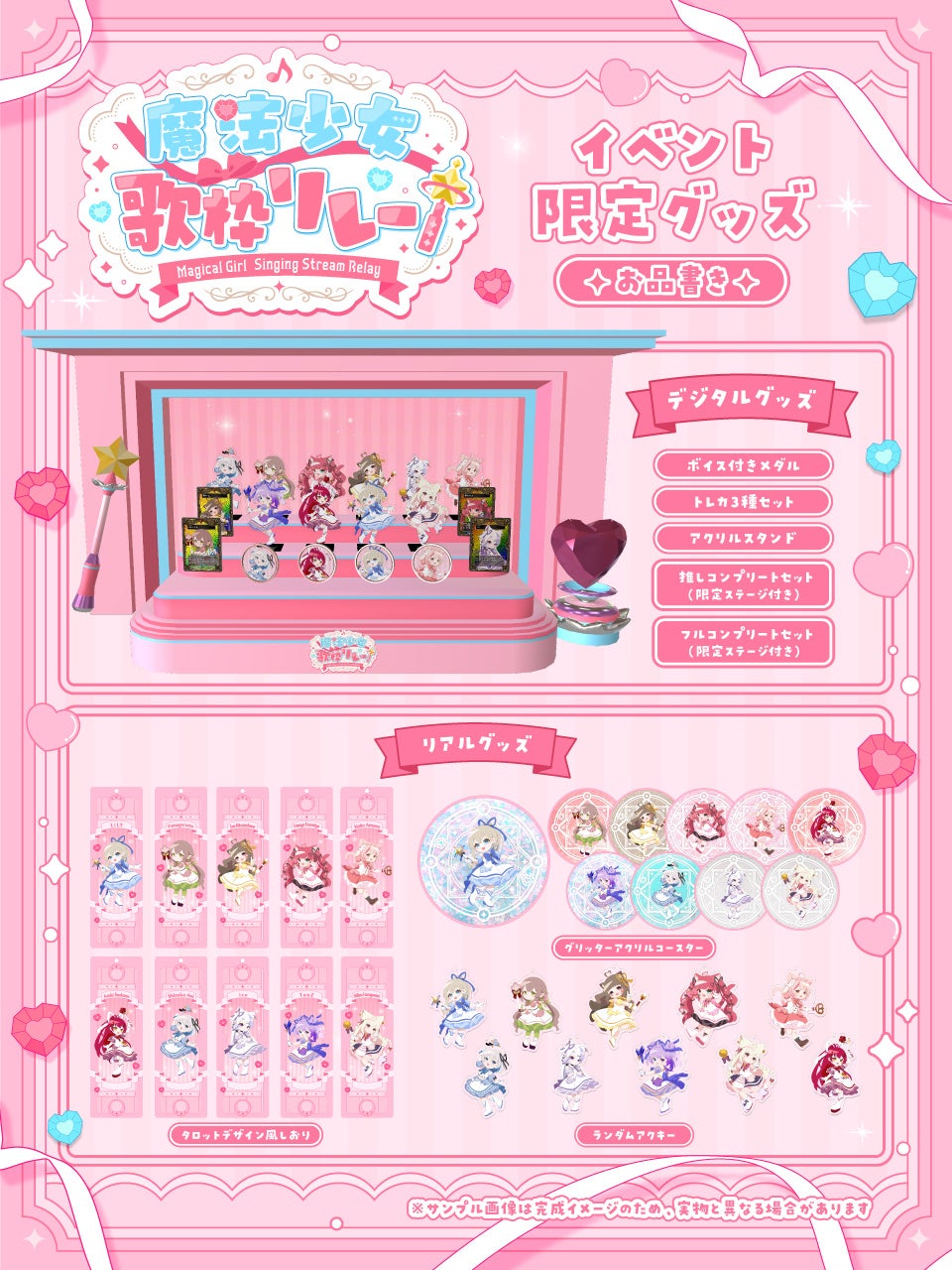 本イベント開催を記念して参加者が魔法少女姿となった描き下ろしイラストによるタロットカード風しおりやアクリルキーホルダー・コースターといった限定グッズに加え限定ボイスなどが楽しめるデジタルグッズを作成しV-tampにて販売中です。