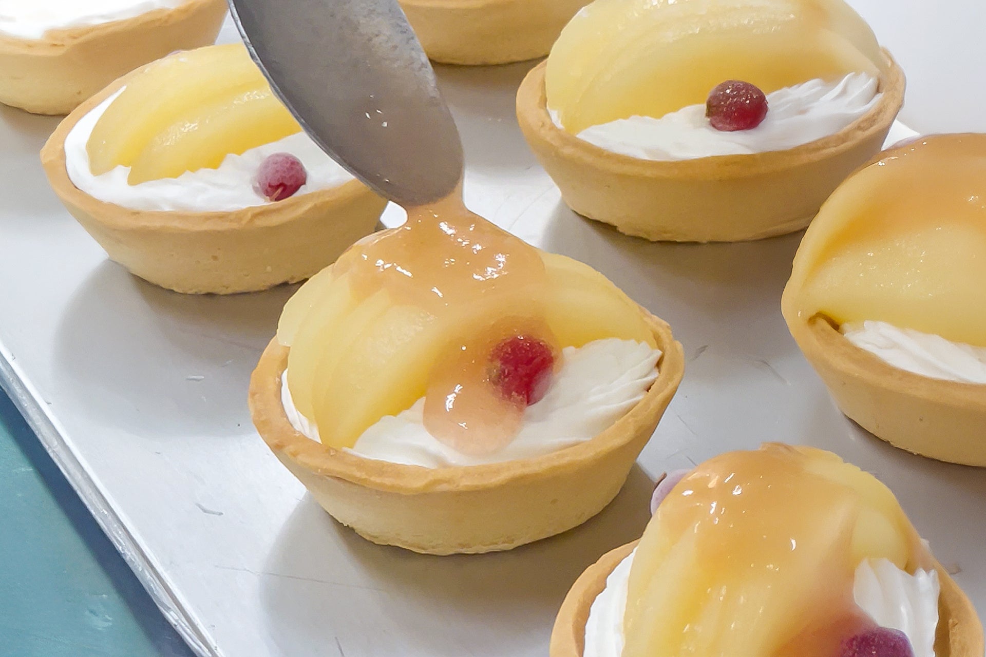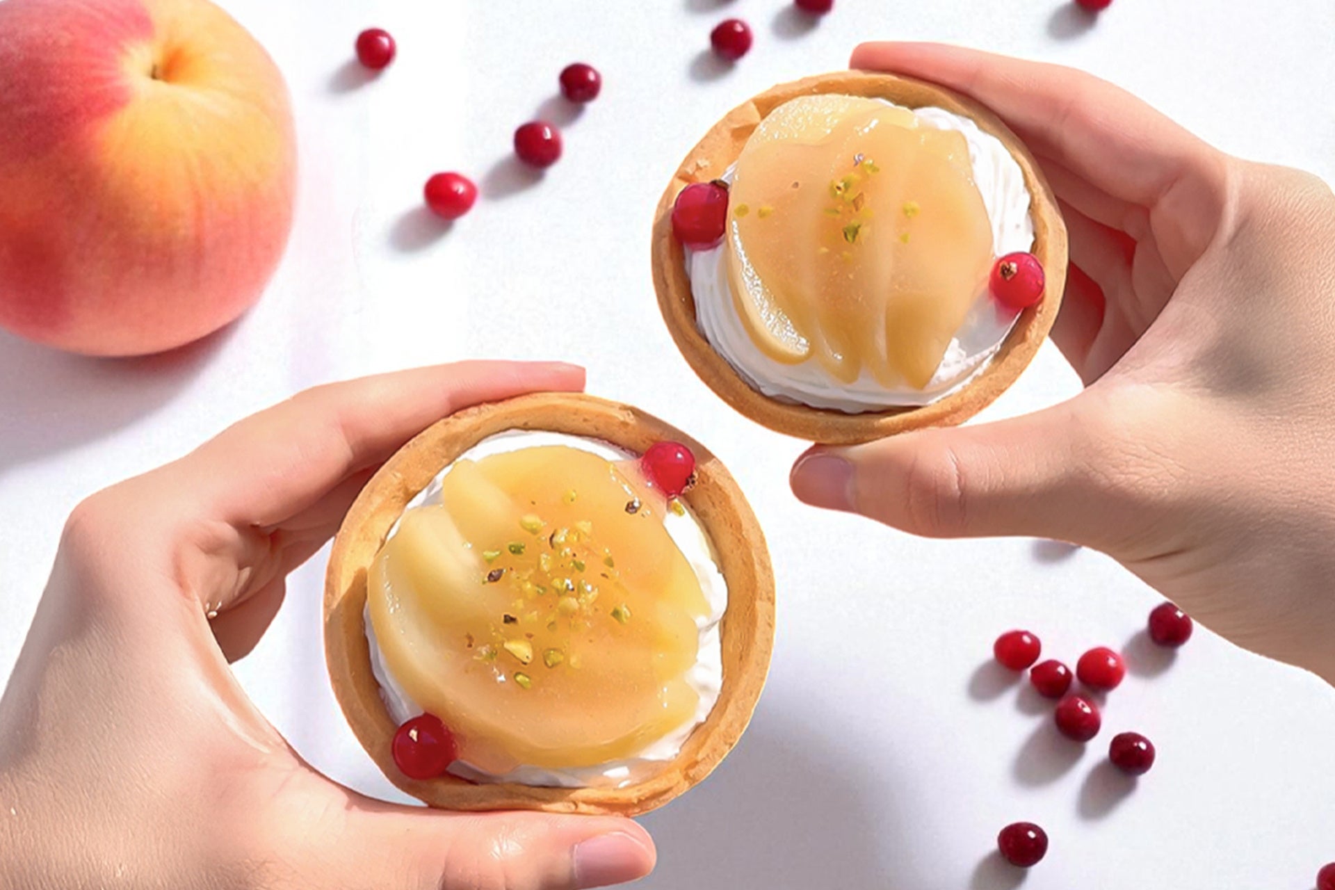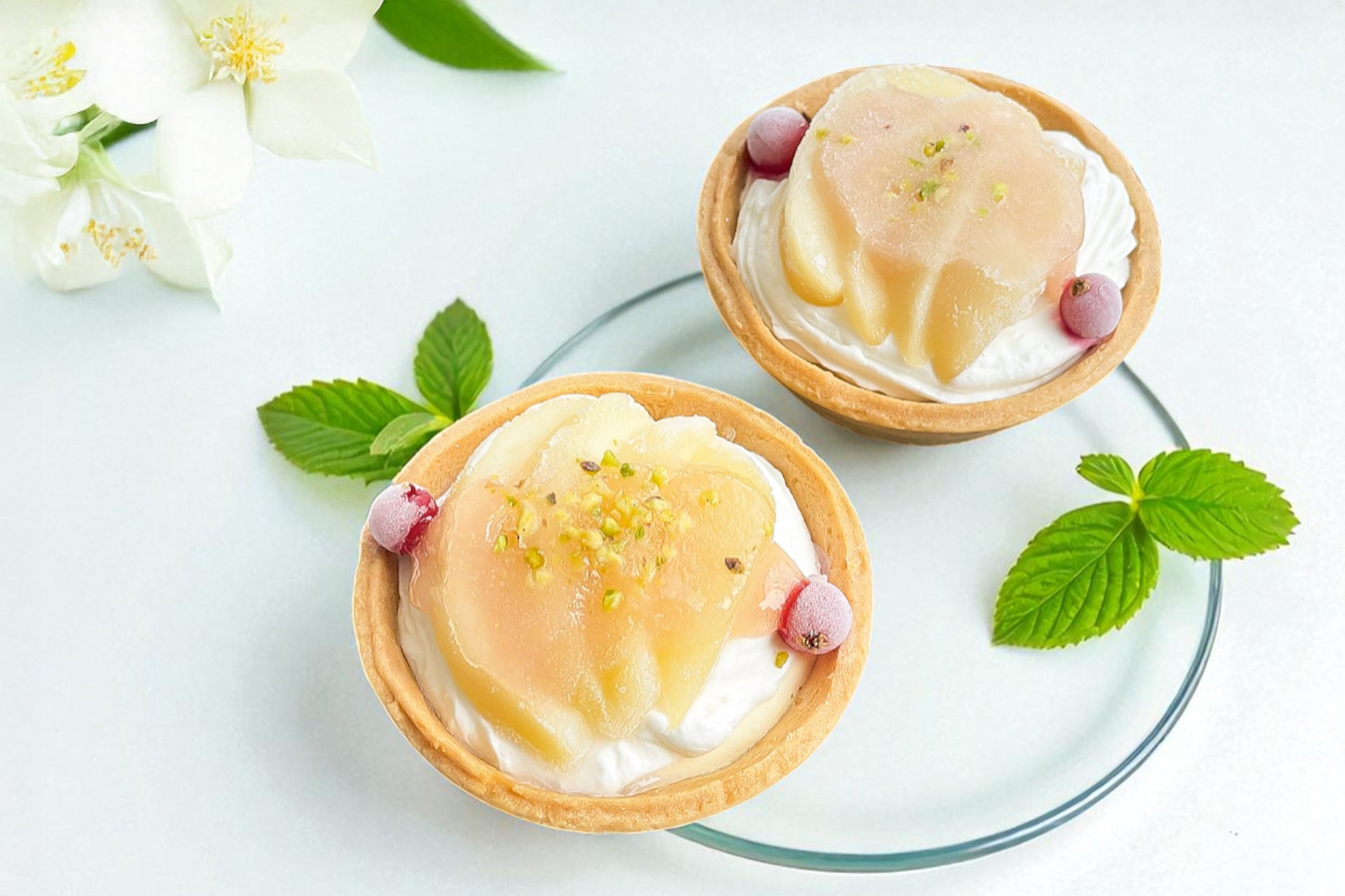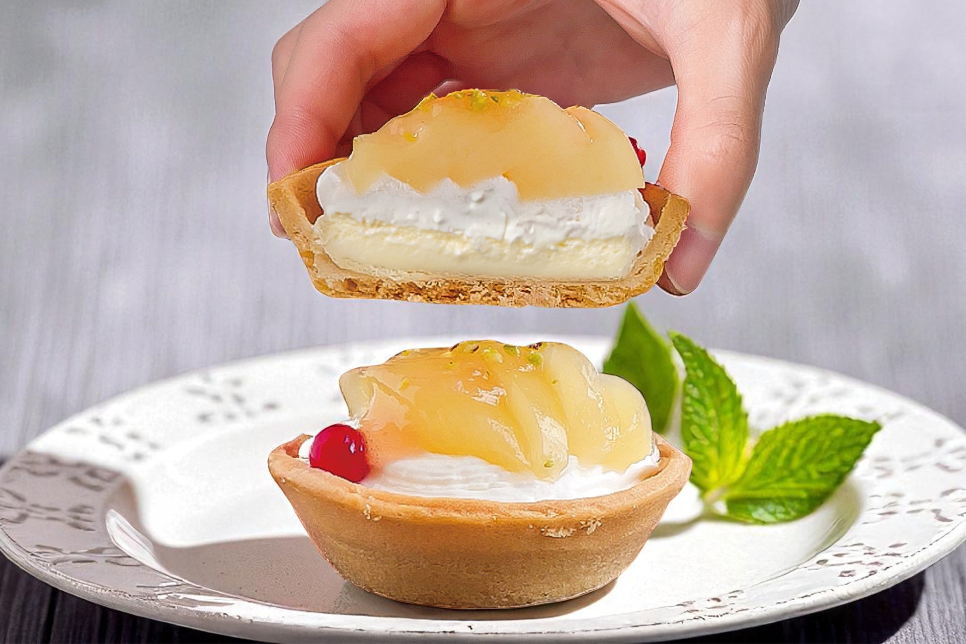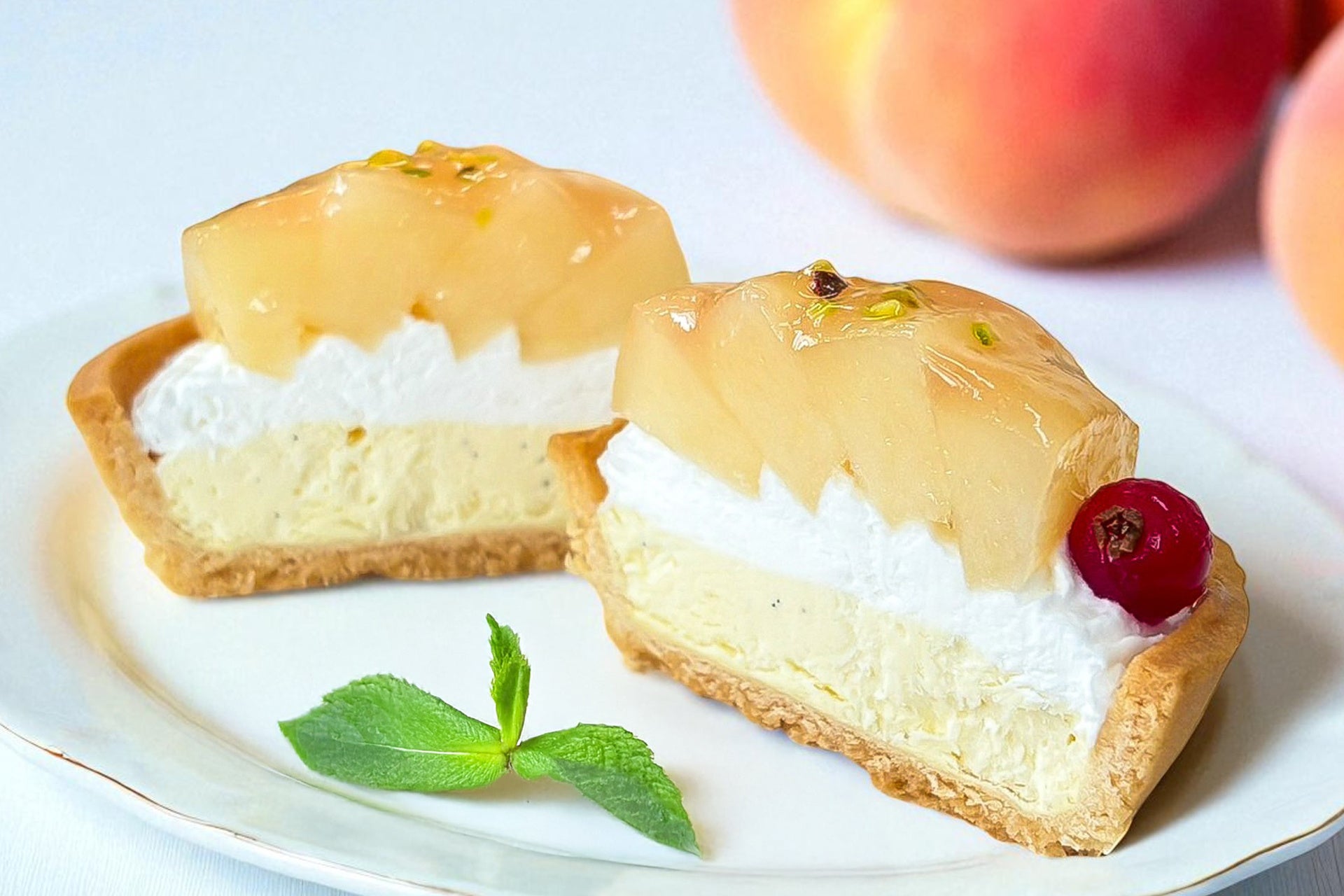 この二つの桃の上品な香りと芳醇な甘みが重なり合い、アイスタルトに“果実のごちそう感”を添える、極上の仕上げとなっています。