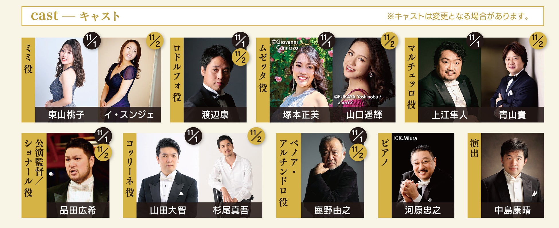 日本の第一線で活躍している選りすぐりのオペラ歌手が集まる『ラ・ボエーム』を、2日間違う配役で楽しめます。