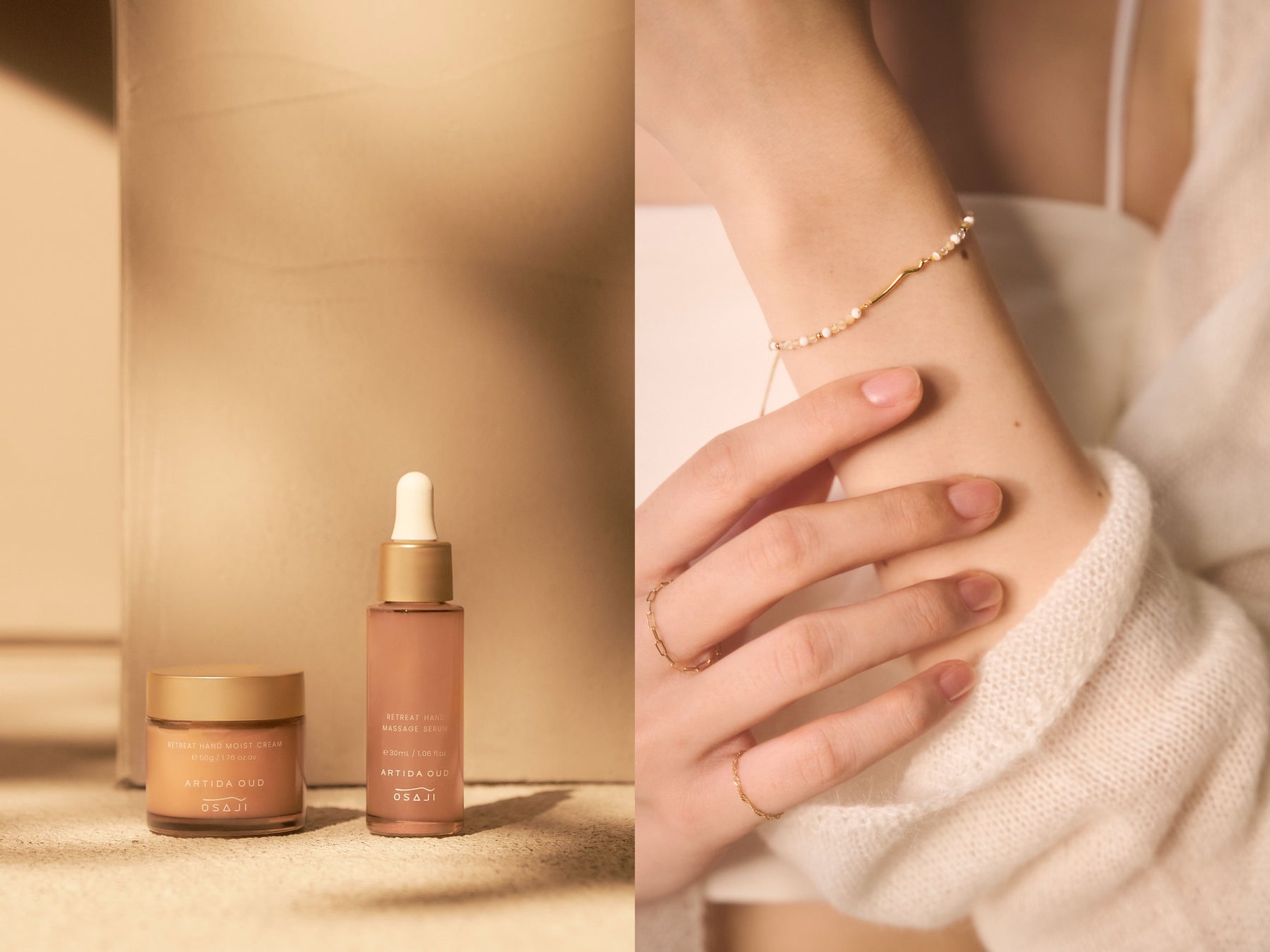 OSAJIで絶大な人気を誇る、リトリートハンドセラムとクリーム、そしてARTIDA OUDの天然石ブレスレットの限定セット。
