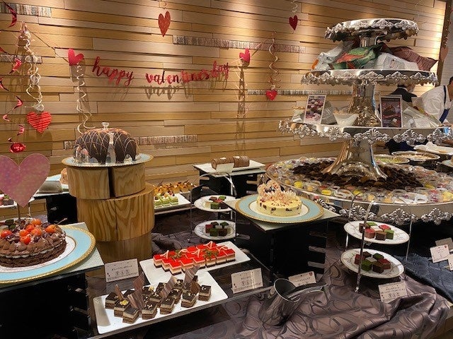 2025年2月9日に開催したスイーツビュッフェでは、バレンタインをテーマに、チョコレートやフルーツを使用したスイーツで甘いひとときをお過ごしいただきました♡バルーンやハートの装飾に加え、チョコレート掛けのクローシュを飾りメルヘンな世界観を演出。