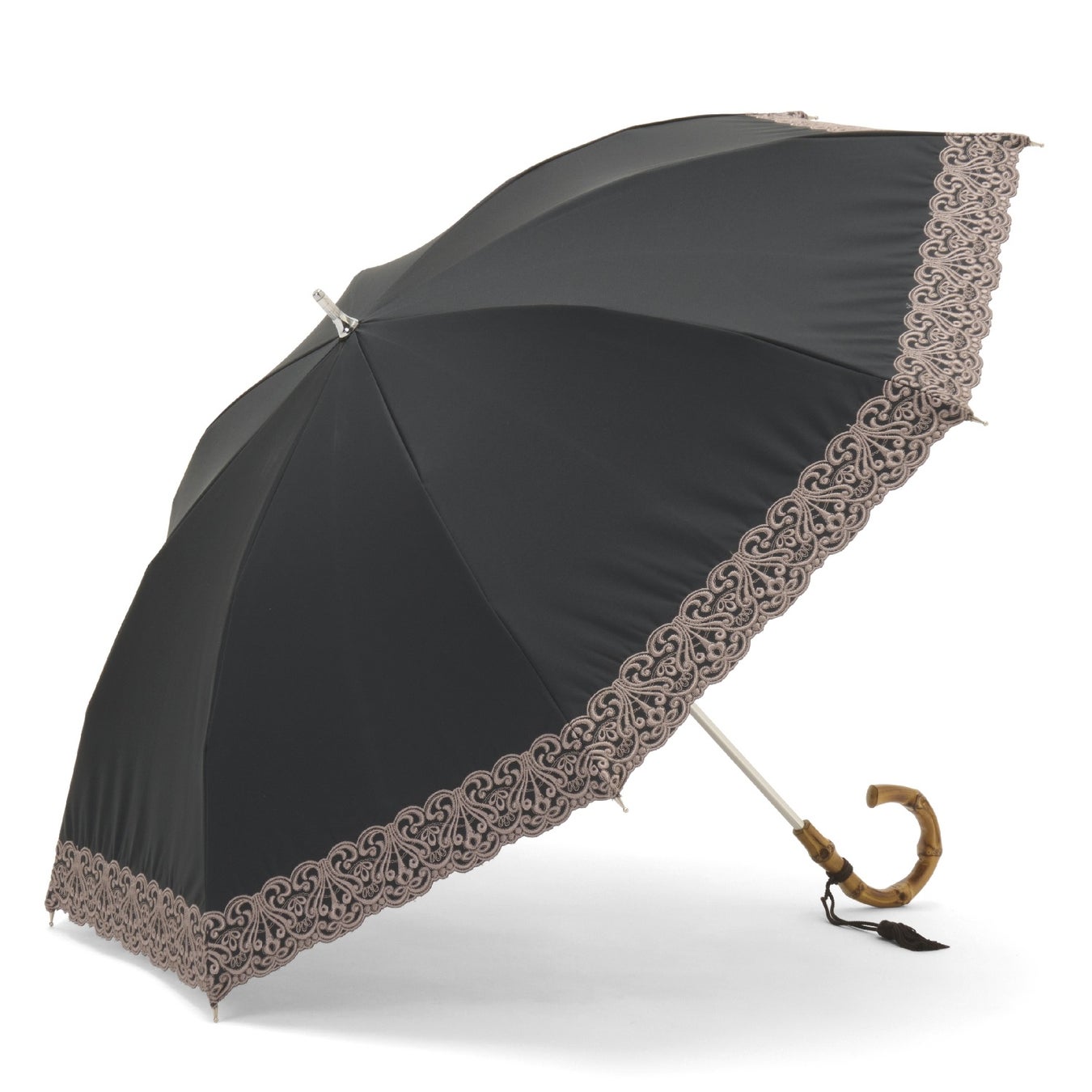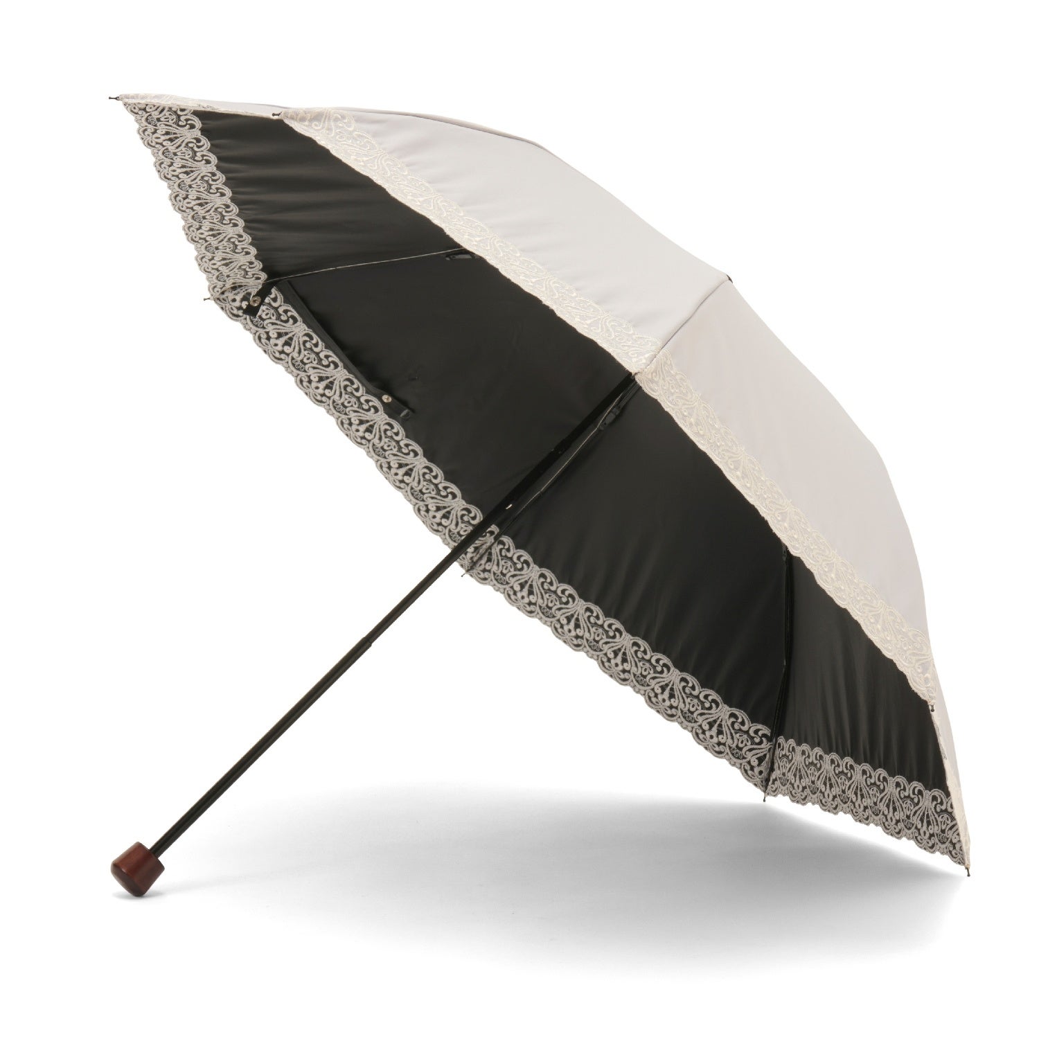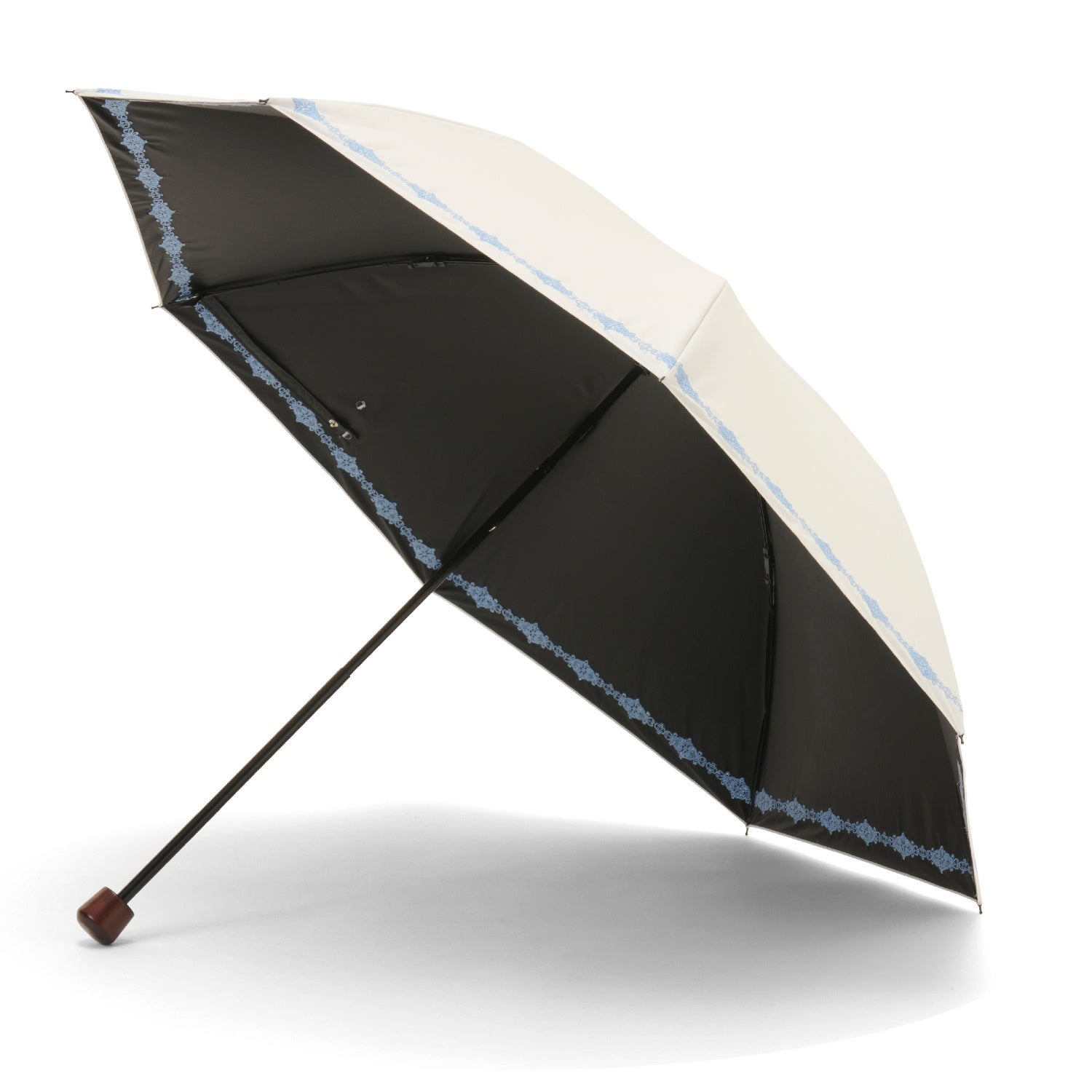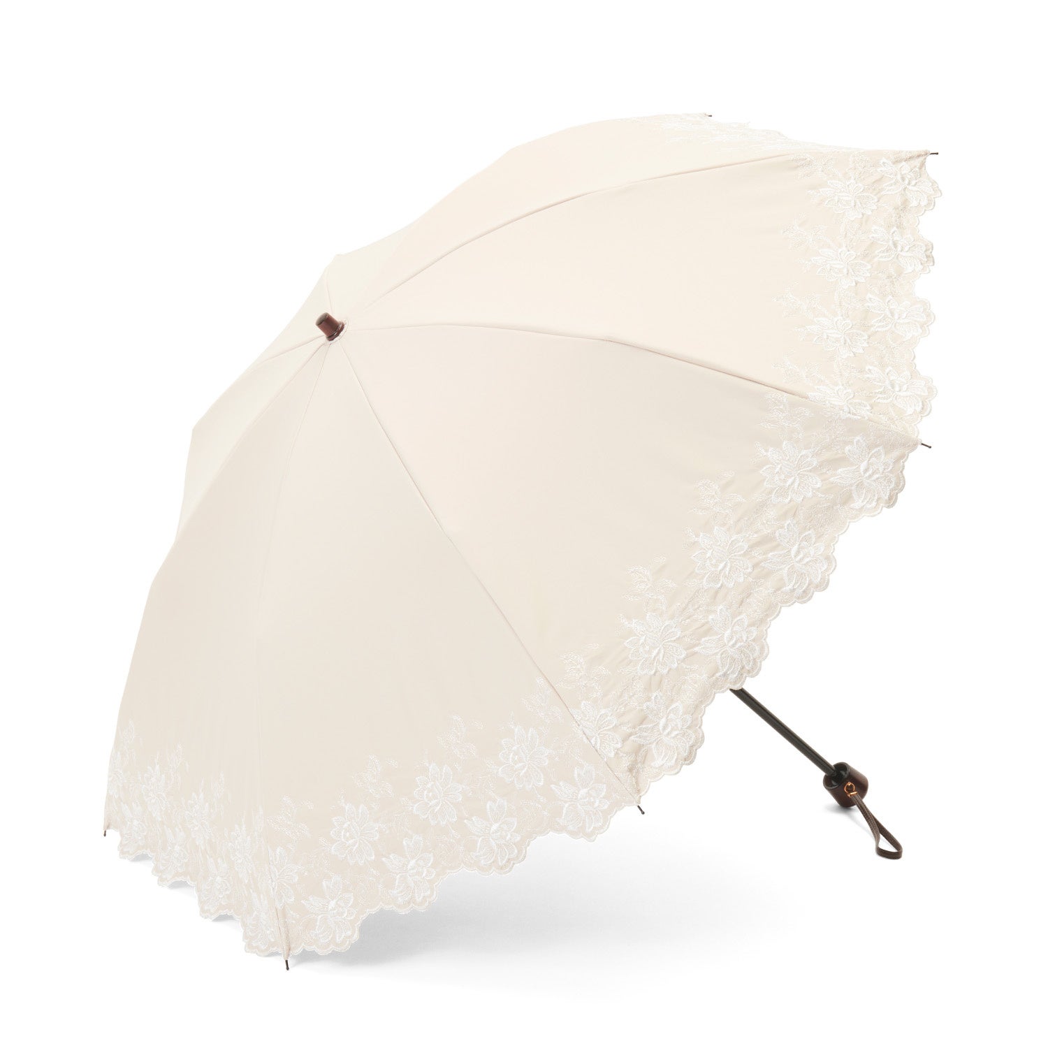 細く繊細なエンブロイダリーレースが可憐で優しい雰囲気の晴雨兼用・一級遮光傘