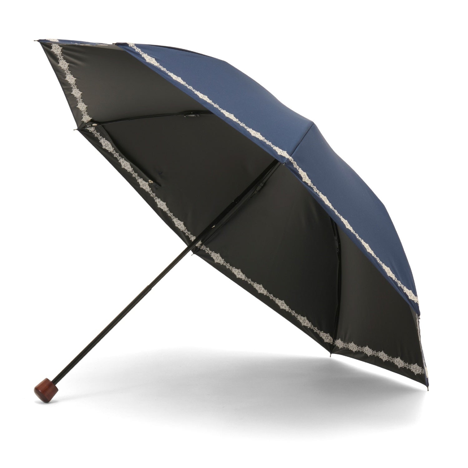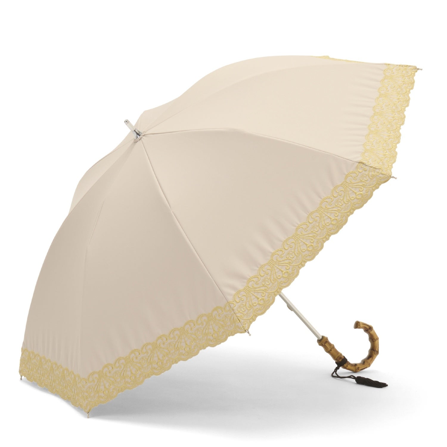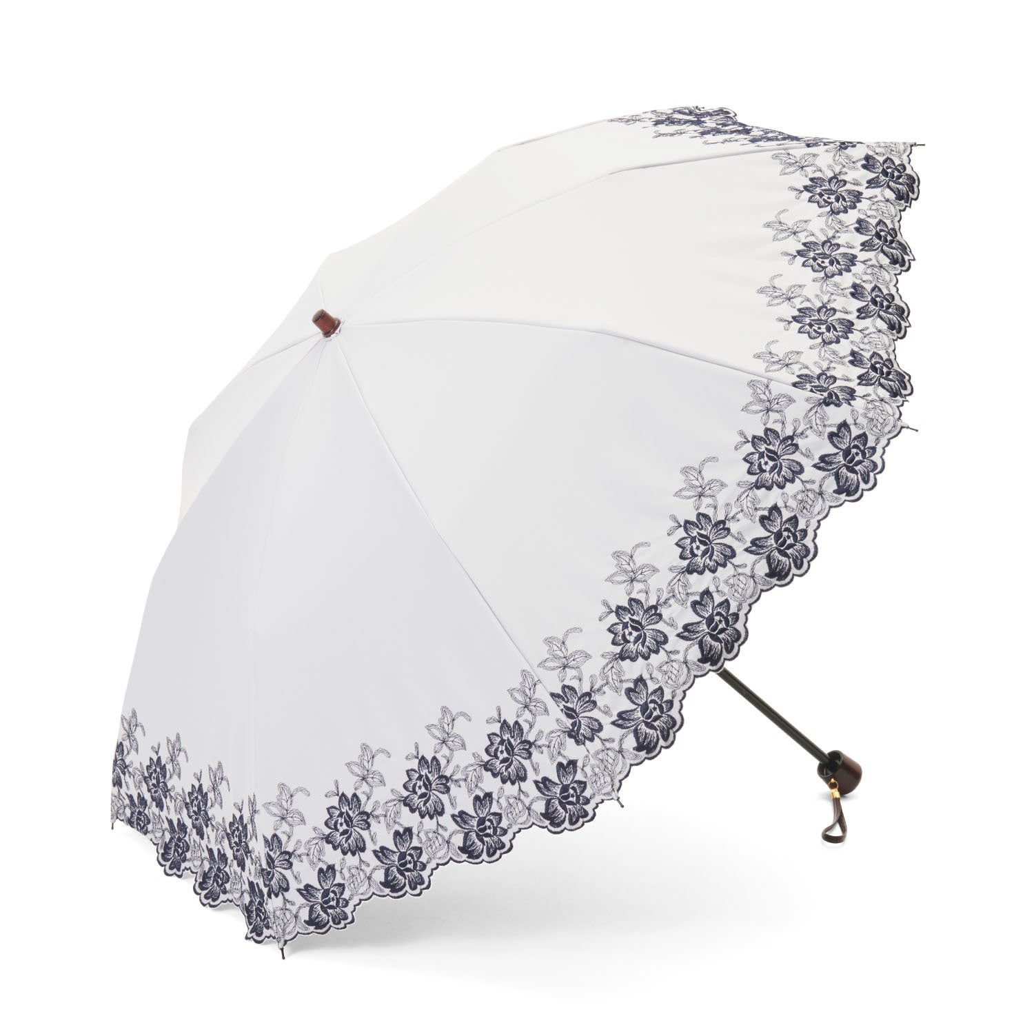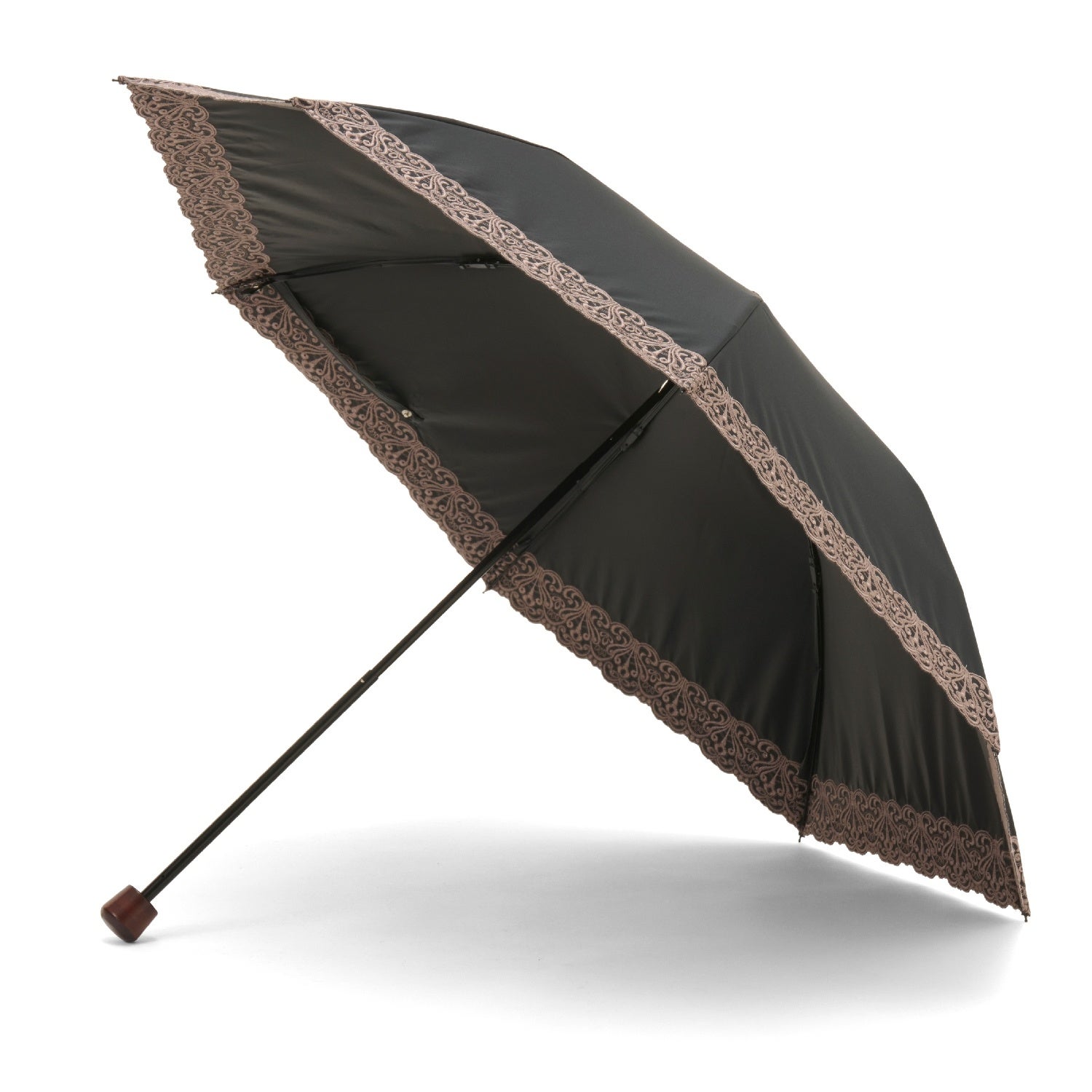 細く繊細なエンブロイダリーレースが可憐で優しい雰囲気の晴雨兼用・一級遮光傘