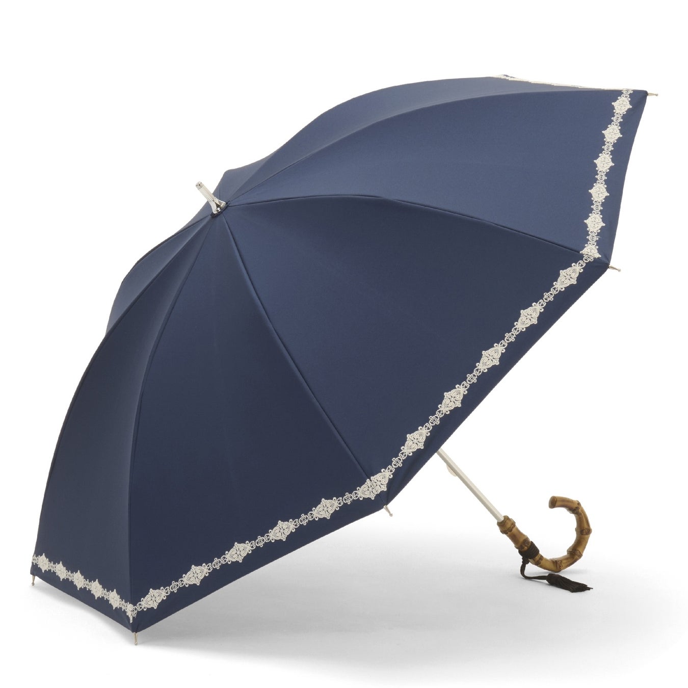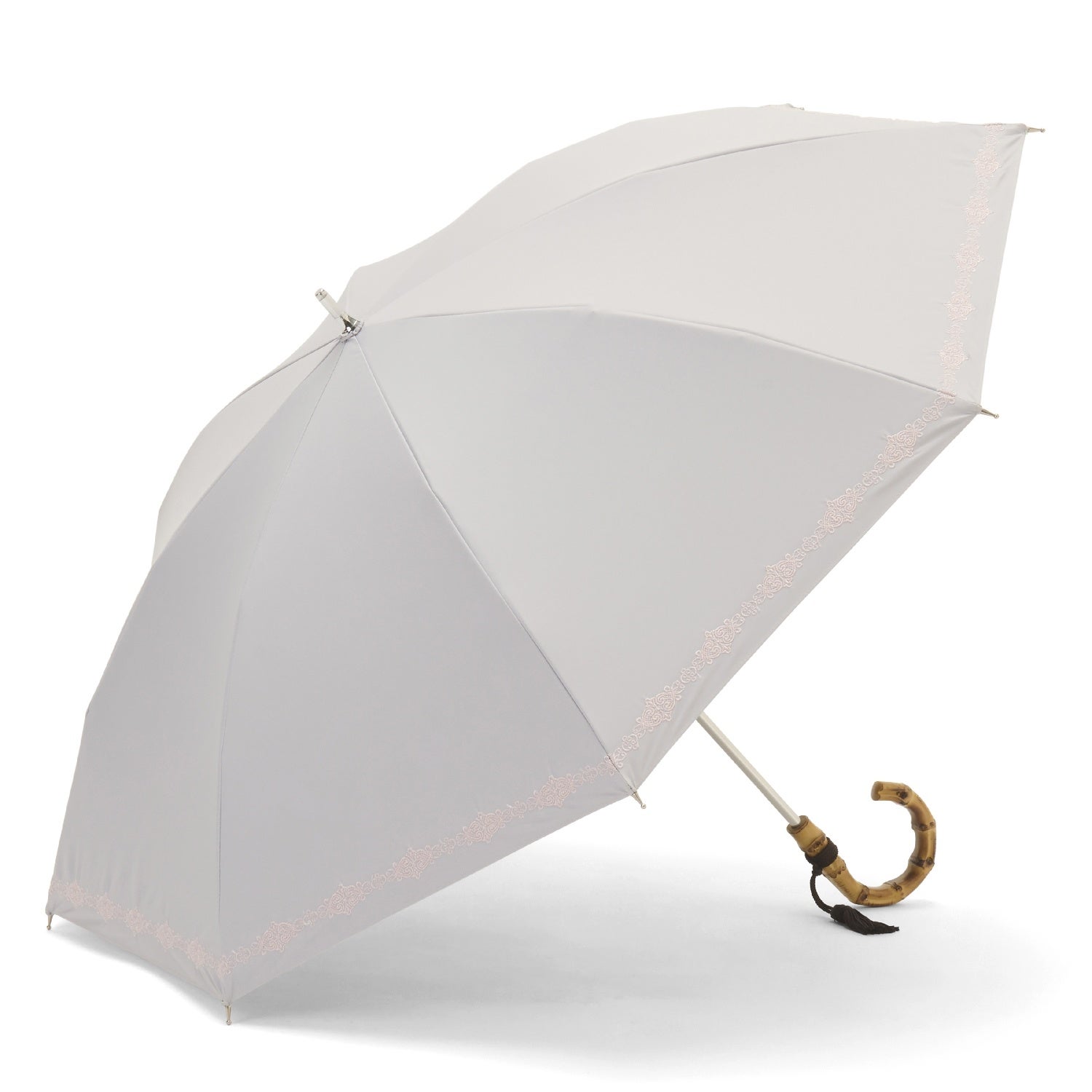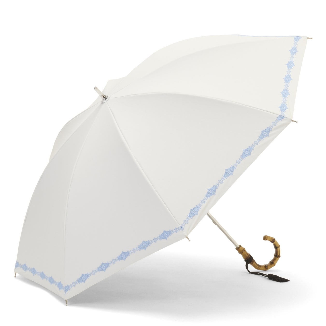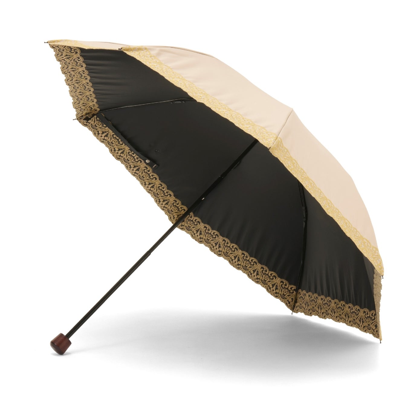 細く繊細なエンブロイダリーレースが可憐で優しい雰囲気の晴雨兼用・一級遮光傘