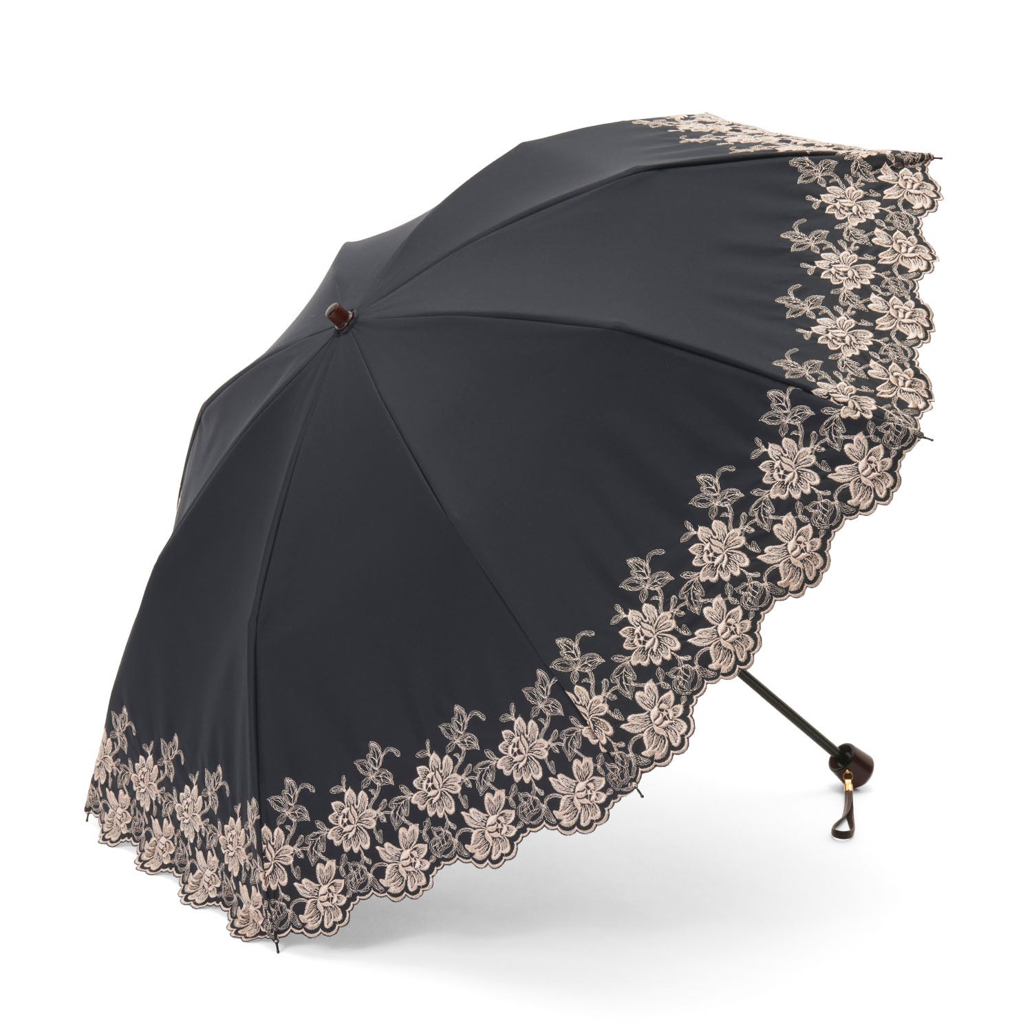 糸をたっぷり使ったエンブロイダリーレースが存在感抜群の晴雨兼用・一級遮光傘