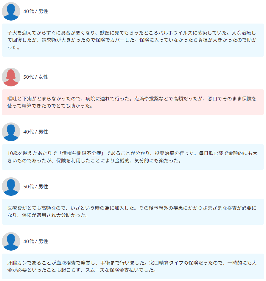ここからは、ペット保険を実際に利用した方の声をお伝えしていきます。