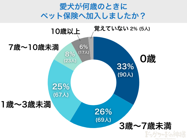 0歳加入が王道だが、成犬から入る人も約半数。「7歳」あたりをシニア期前の最終ラインと考える傾向が見られた。