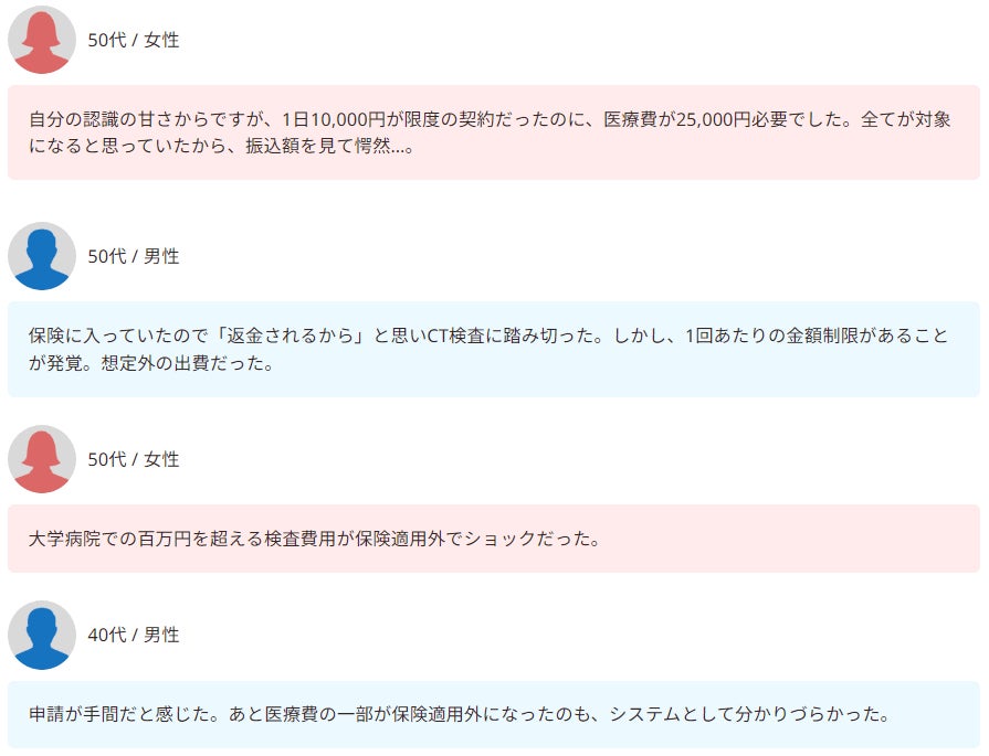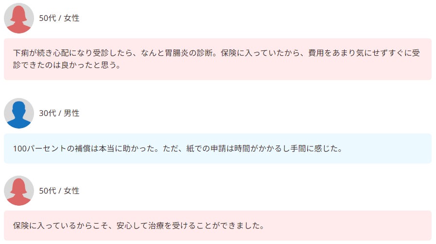 保険が日々のお財布の負担を和らげてくれるおかげで、小さな不調でもためらわずに受診でき、重症化を防げているという声も目立ちました。