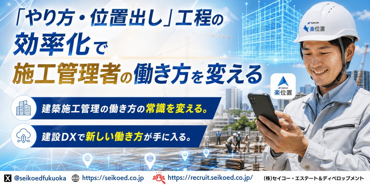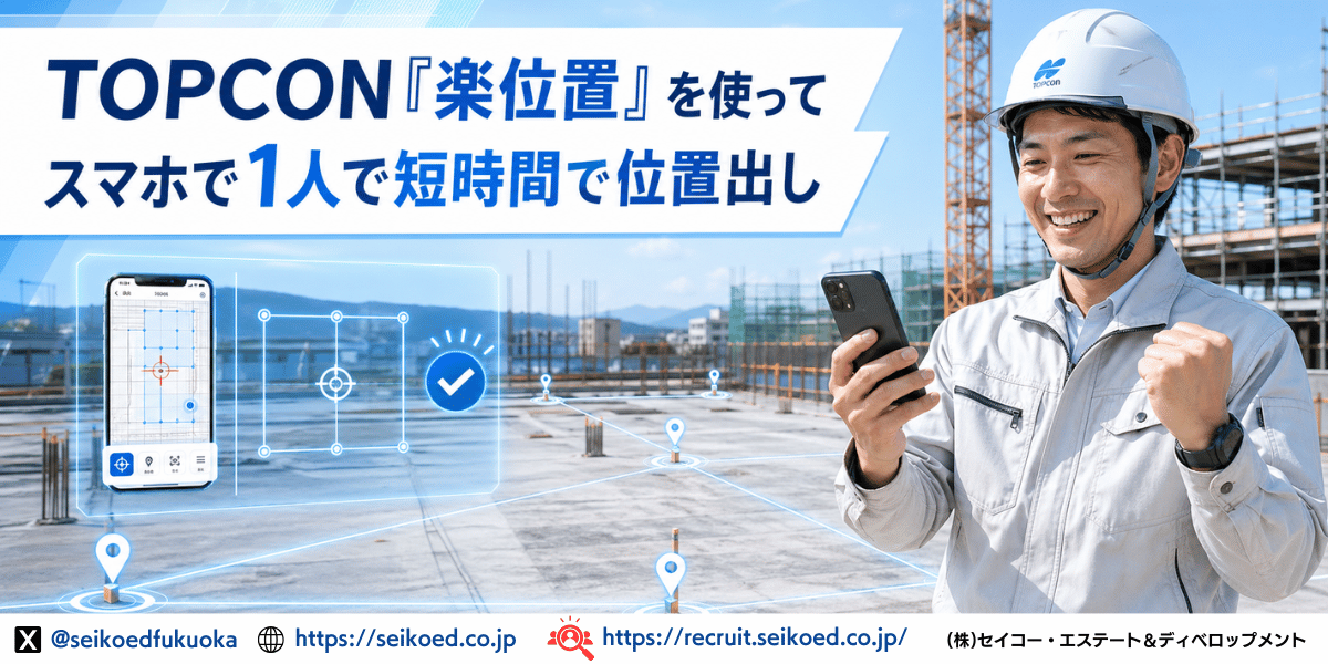 建築施工管理の“位置出し”工程を効率化。TOPCON『楽位置』を導入し建設DXを加速。福岡の建築・設計・施工のセイコー・エステート&ディベロップメント