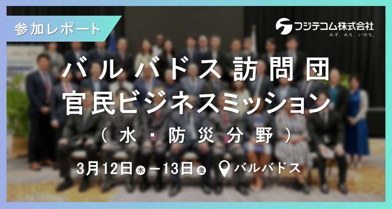 フジテコム株式会社(本社:東京都千代田区、代表取締役:森山慎一、以下:フジテコム)は、2026年3月12日(木)~13日(金)にバルバドス国ブリッジタウンで開催された「バルバドス訪問団 官民ビジネスミッション(水・防災分野)」に参加しました。