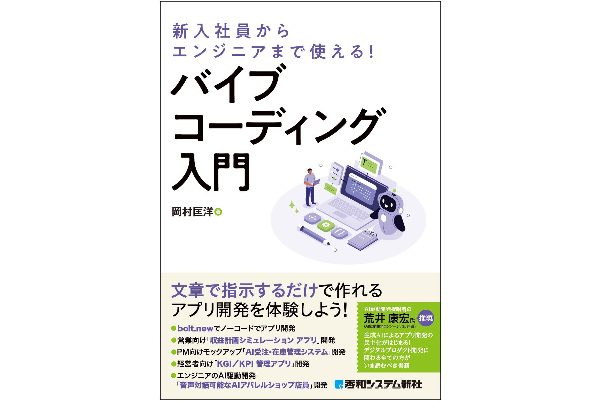 株式会社秀和システム新社(東京都千代田区・代表取締役 津島憲豪)は、2025年12月16日(火)、新刊『新入社員からエンジニアまで使える! バイブコーディング入門』を発刊します。