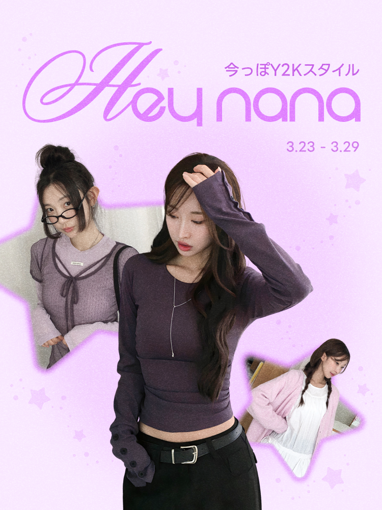 ガーリーなアイテムをカジュアルにミックスマッチするスタイルが魅力で、今もっともホットなY2Kの感性を体現しています。最旬のY2Kスタイルを探しているなら、ぜひHEY NANAのショップをチェックしてみてください!