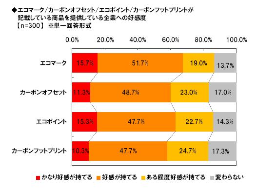 ・エコマーク/カーボンオフセット/エコポイント/カーボンフットプリントが記載されている商品を提供している企業の好感度