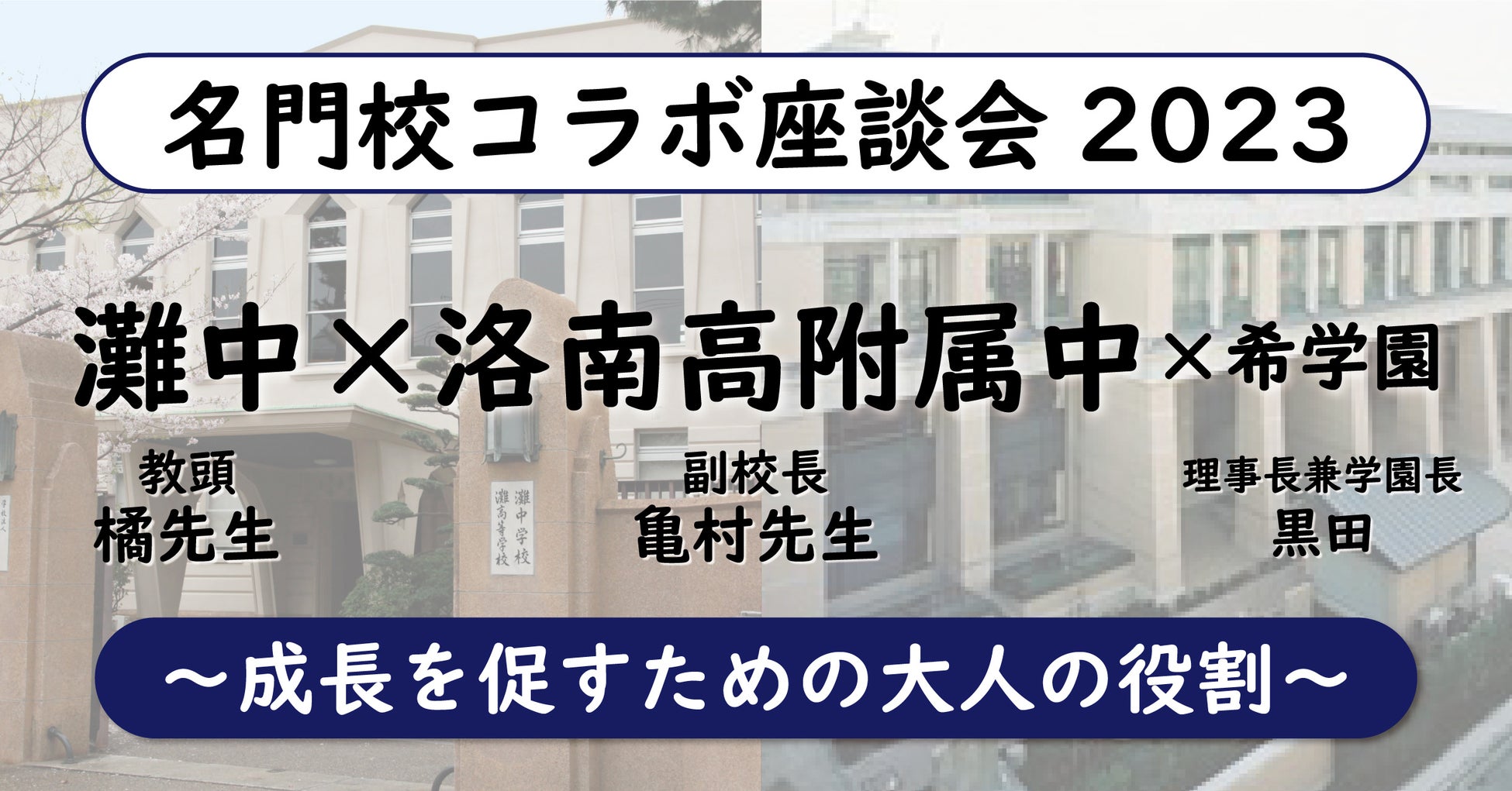 この度、毎回ご好評をいただいております「名門校コラボ座談会」の2023年度 第1弾といたしまして、《灘中×洛南高附属中×希学園》を下記要領にて実施いたします。