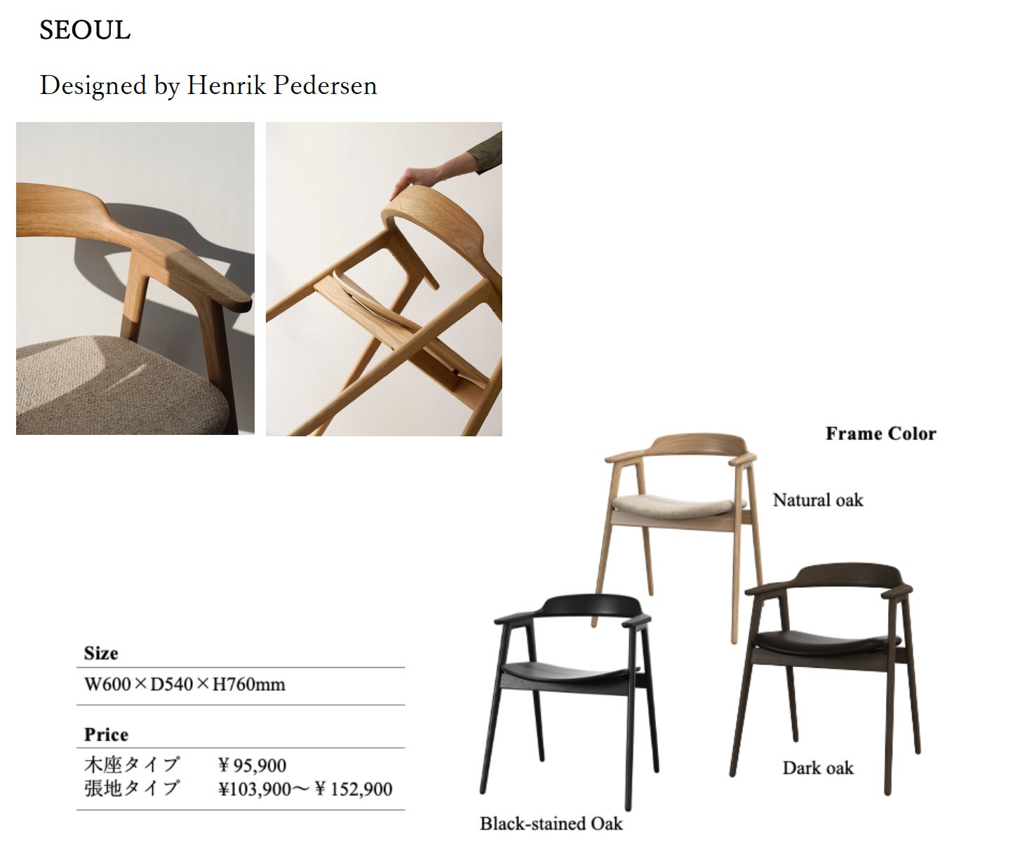 「ヘンリック・ペダーセンがデザインしたダイングチェア『Seoul』は、デンマーク・デザインの伝統のエッセンスが完璧に凝縮されています」とクラウス・ジェンセンは話します。
