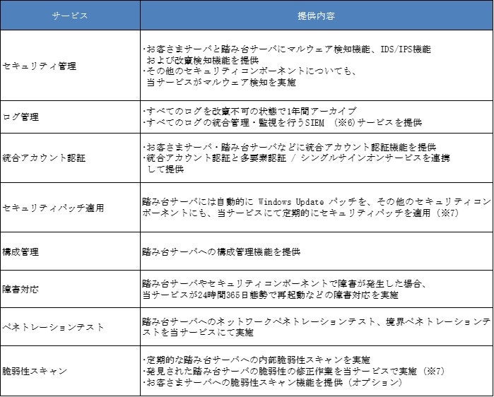 ※7 お客さまがインストールしたアプリケーションへのパッチ適用および脆弱性対応は本サービスの対象外です。