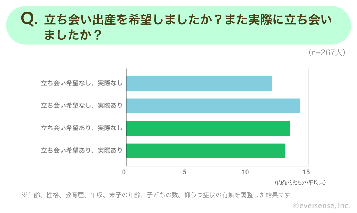また立ち会い出産については、コロナ禍で希望していても実現できなかった人が多いかと思いますが、もともと希望していた人は、実際には立ち会えなかったとしても、育児に対する内発的動機は低下しないことがわかりました。