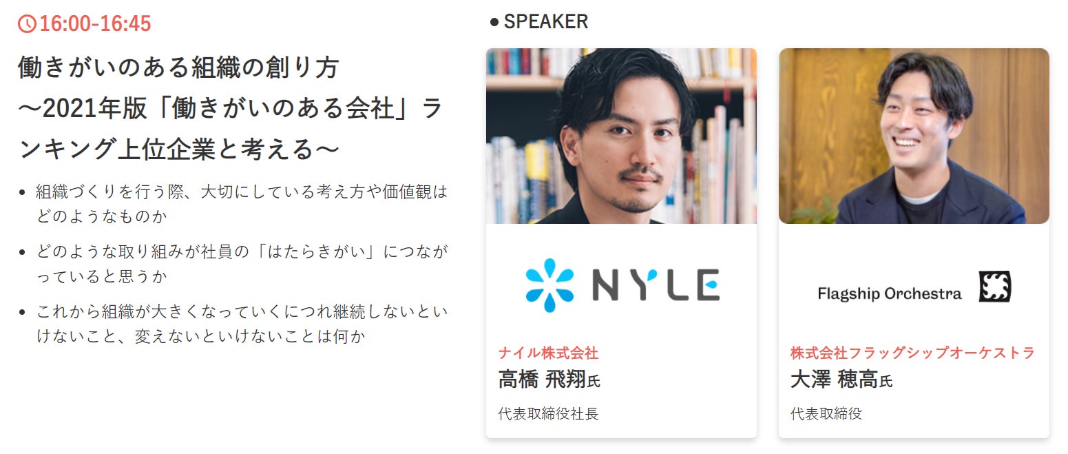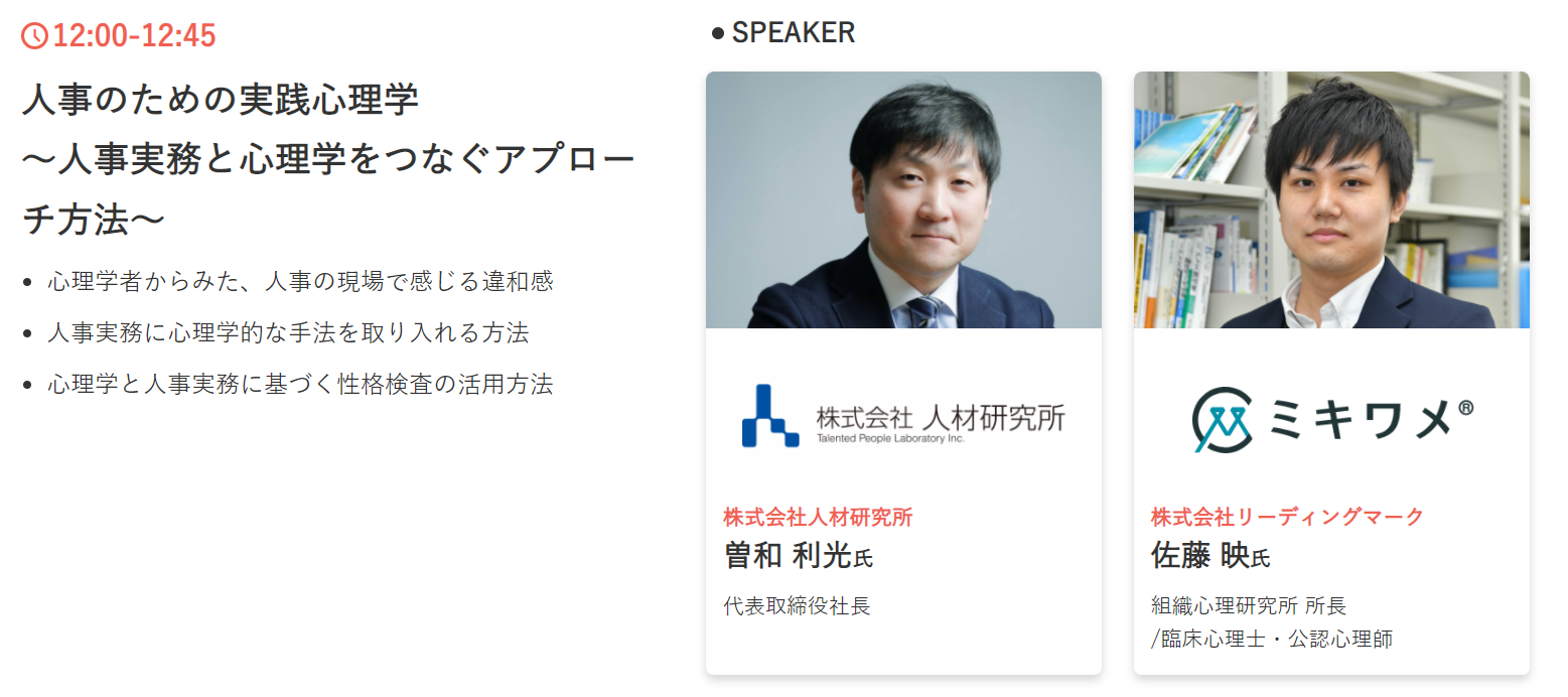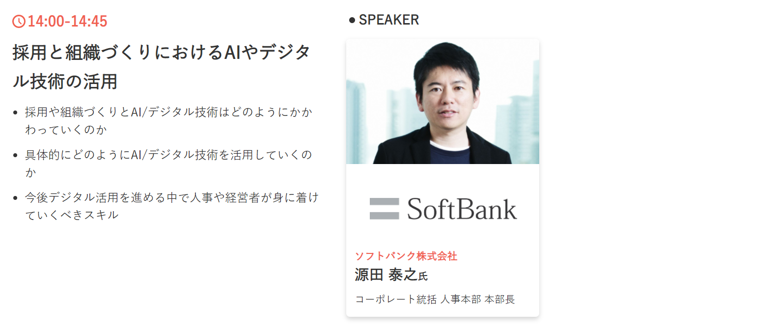 基調講演では、株式会社人材研究所 代表取締役社長の曽和 利光氏、株式会社サイバーエージェント 常務執行役員CHOの曽山 哲人氏、ソフトバンク株式会社 コーポレート統括 人事本部 本部長の源田 泰之氏、Almoha LLC 共同創業者COO/デジタル庁 人事・組織開発の唐澤 俊輔氏、株式会社フラッグシップオーケストラ 代表取締役の大澤 穂高氏、ナイル株式会社 代表取締役社長の高橋 飛翔氏、株式会社リーディングマーク 組織心理研究所所長/臨床心理士・公認心理師の佐藤 映氏に、「はたらく」を「よく」するを徹底的に語りつくしていただきます。