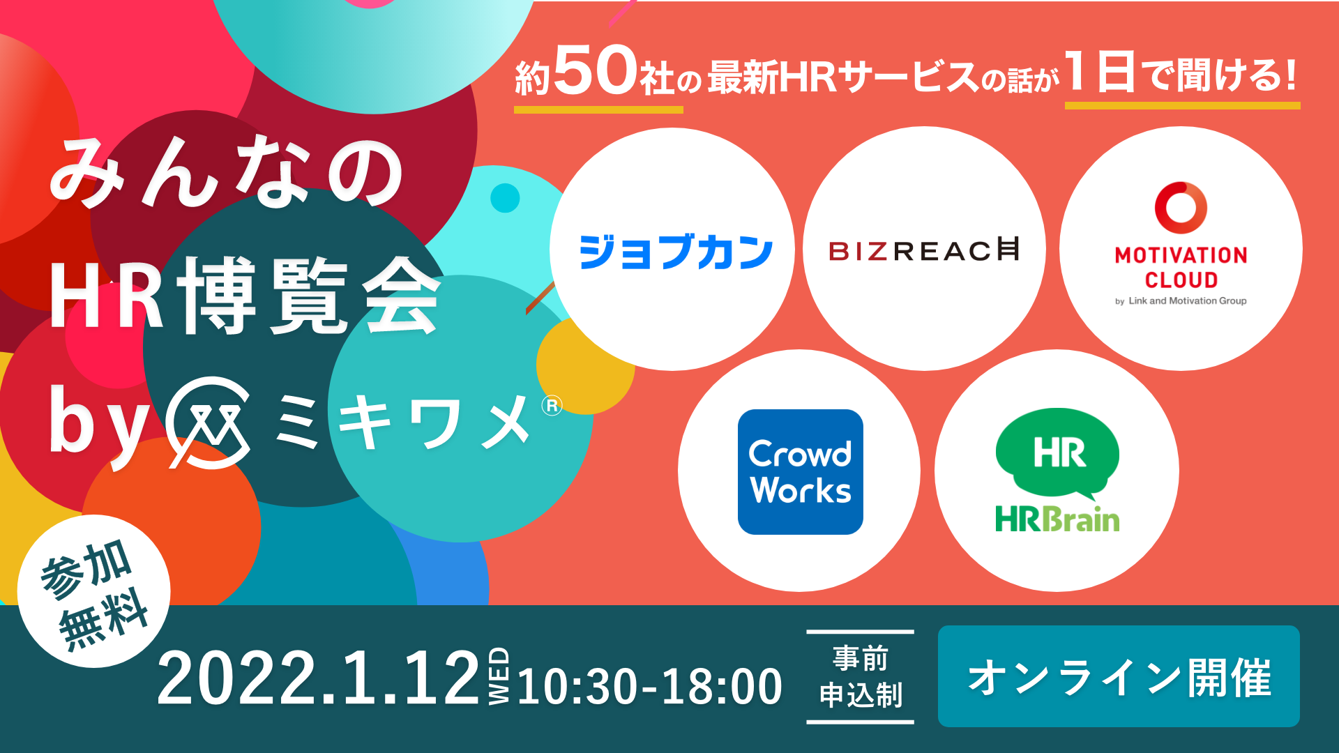 申込締切迫る!HRにかかわる企業約50社と業界有識者7名が登壇する『みんなのHR博覧会 byミキワメ』が2022年1月12日(水)に開催