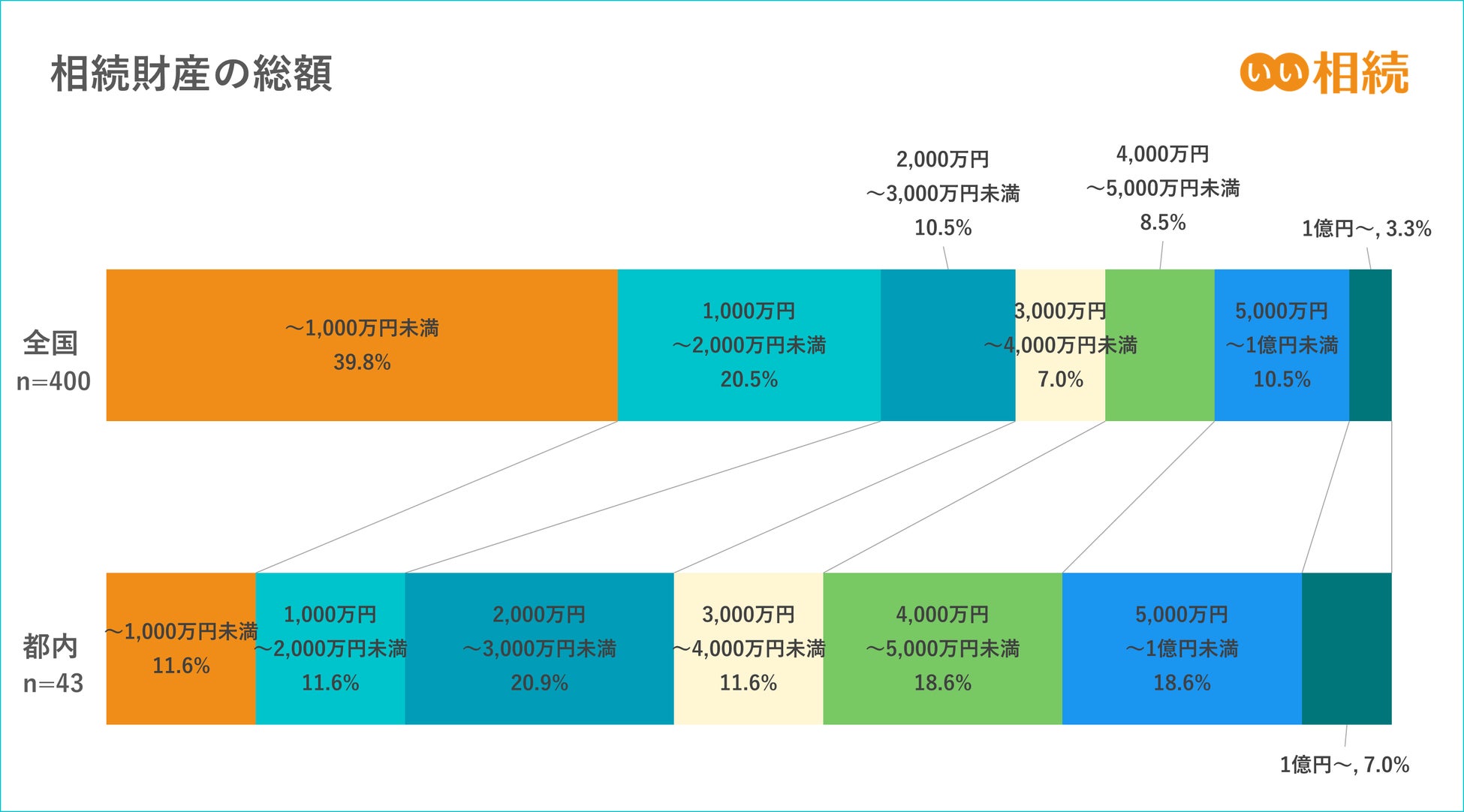 相続財産の総額について質問をしたところ、「1,000万円未満」が39.8%で最多。次いで「1,000万円以上~2,000万円未満」、「2,000万円以上~3,000万円未満」「5,000万円~1億円未満」と続きました。また、相続人が都内在住だった場合は、「2,000万円以上~3,000万円未満」が20.9%で最多、「4,000万円以上~5,000万円未満」と「5,000万円~1億円未満」が同率で18.6%となりました。