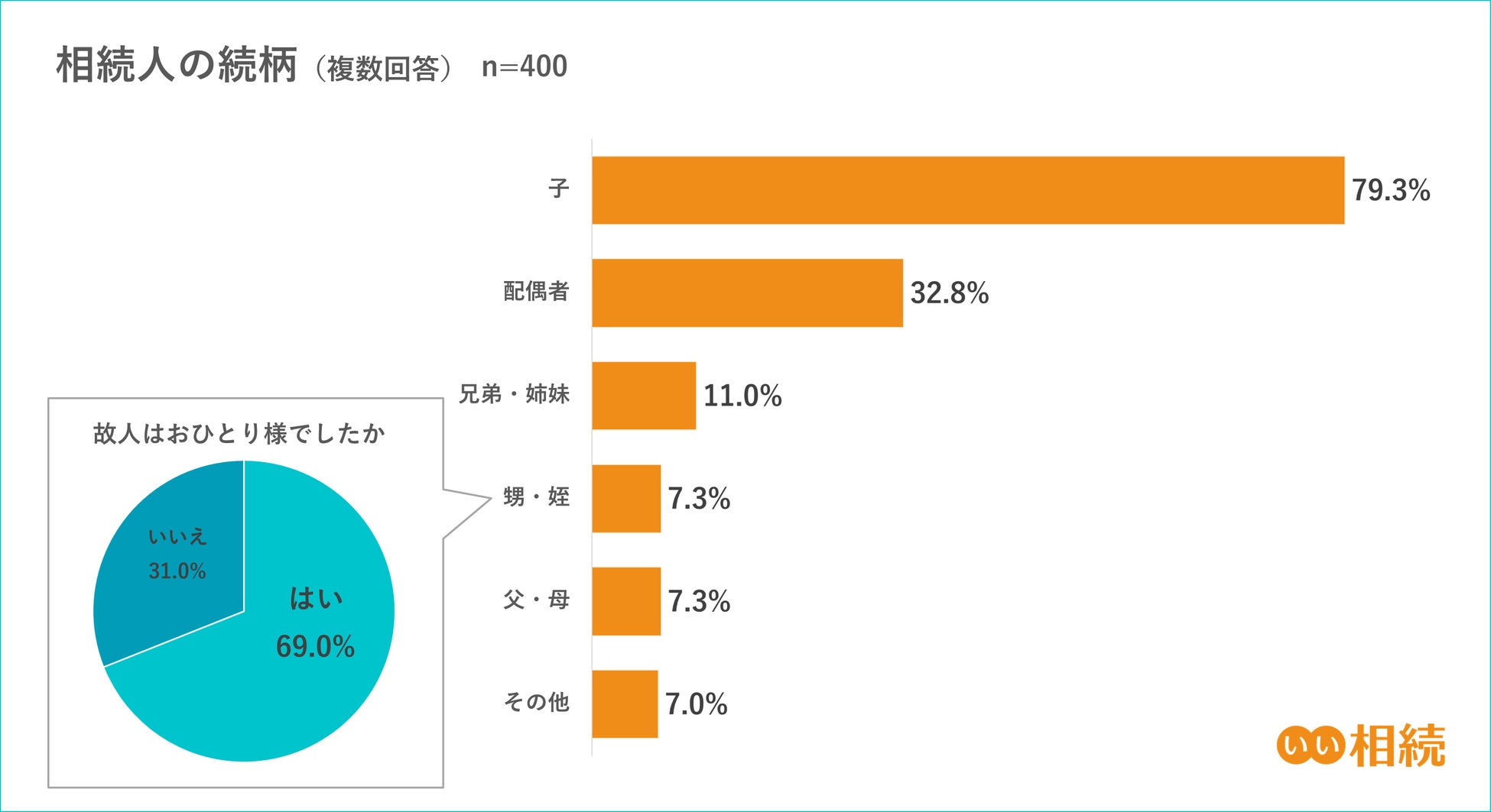 2, 【被相続人】 相続人の続柄の最多は「子」、「姪・甥」が相続人の場合の被相続人は約7割がおひとり様
