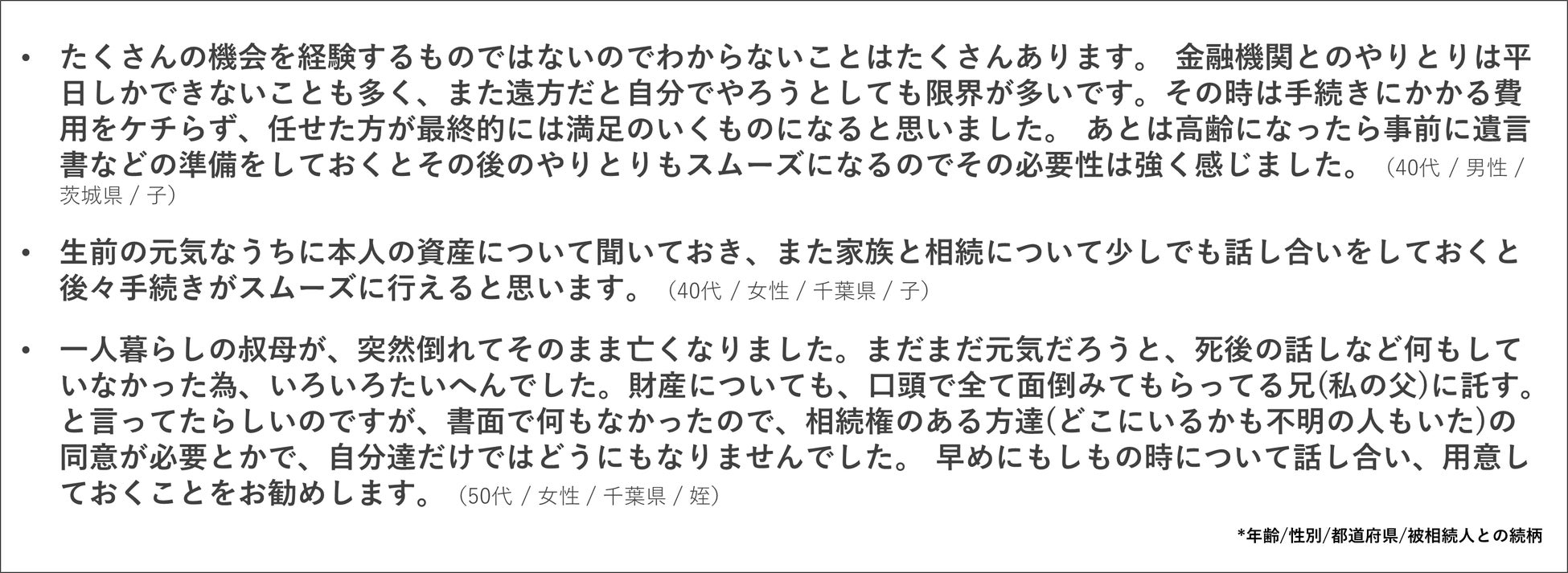 そして今回のアンケート調査では、最後に「今後、相続手続きをする方に向けたアドバイス」もお聞きしています。ぜひ皆様のご参考になれば幸いです。