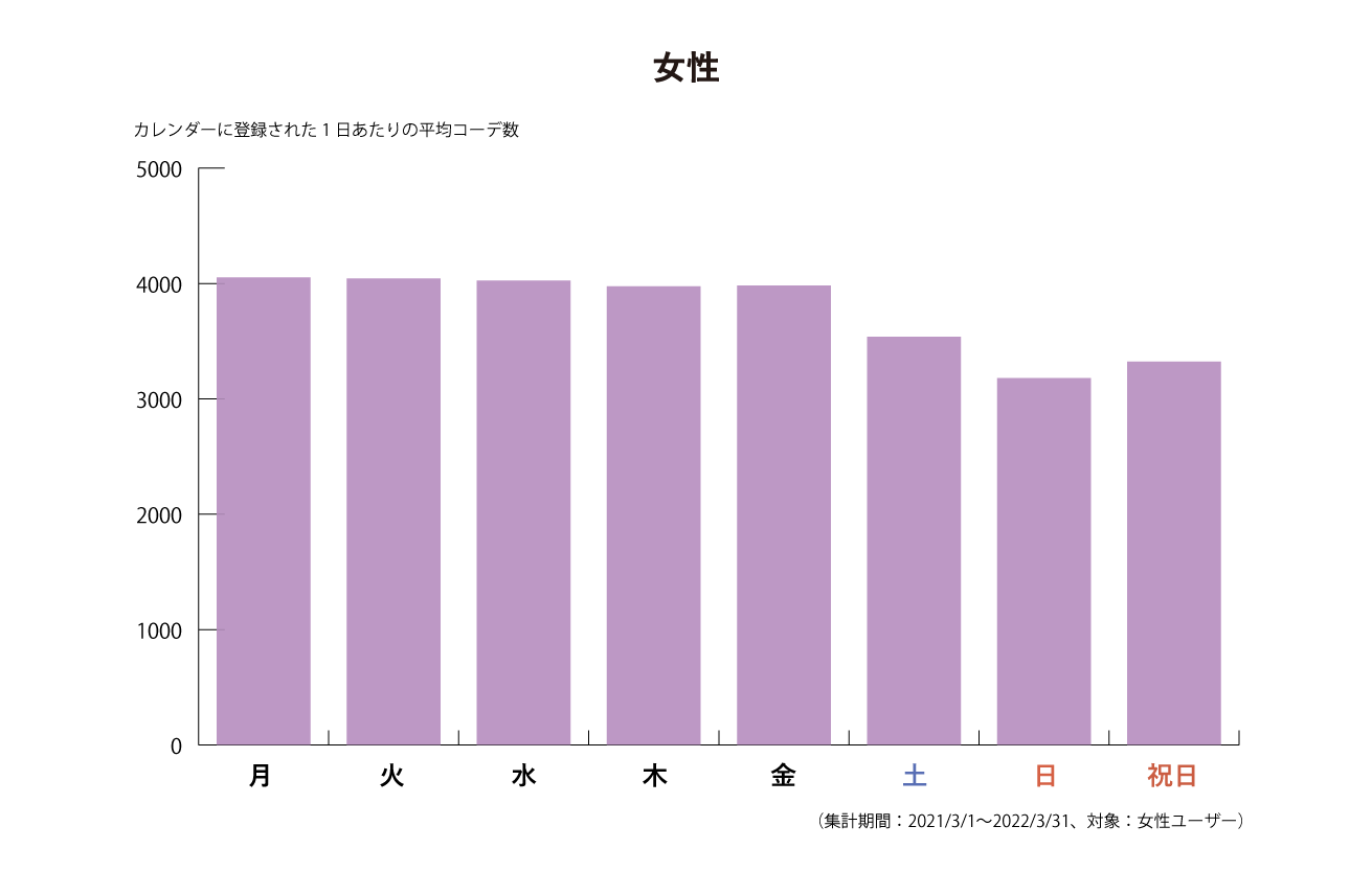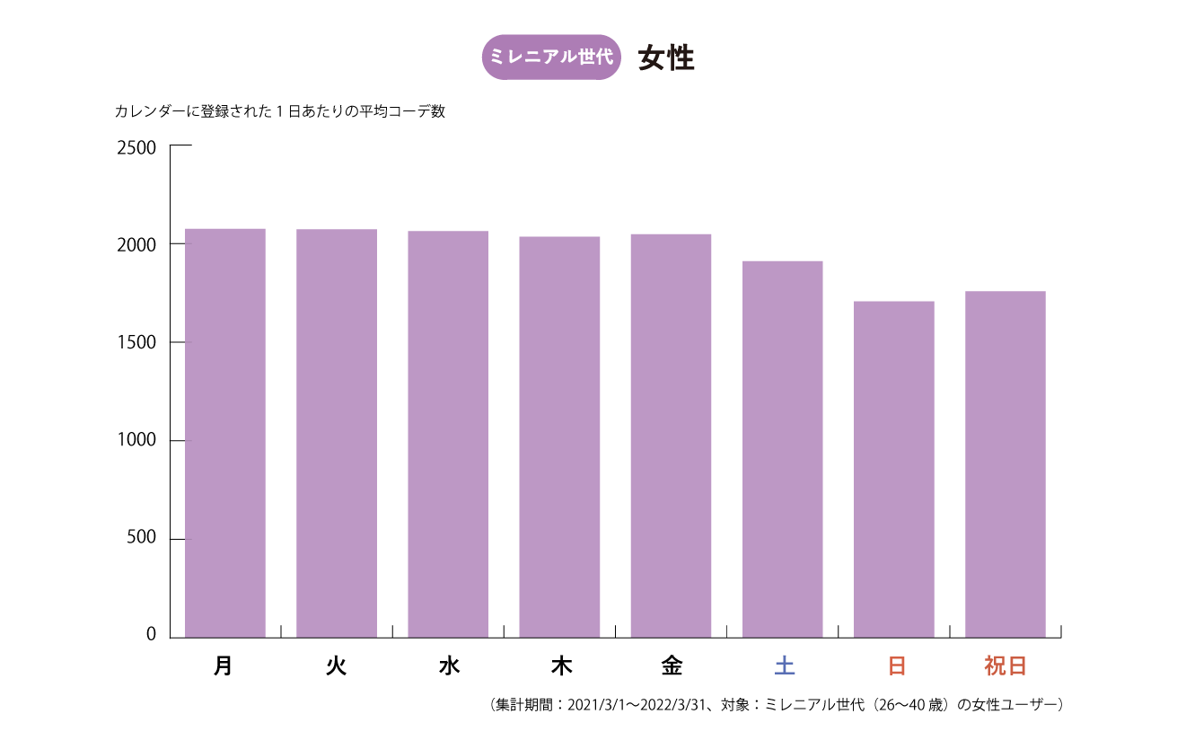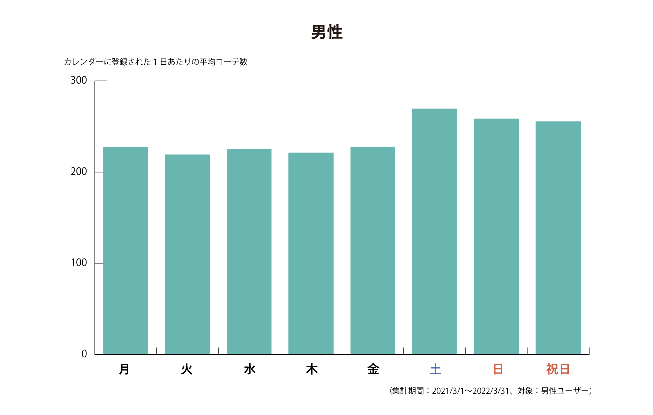 - 女性は「平日」、男性は「土日祝日」のコーディネートを重視している