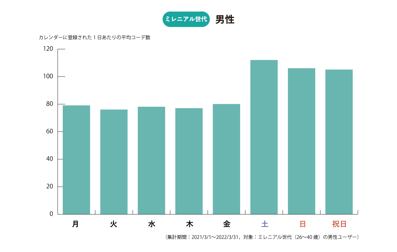 【男性の場合】とくにミレニアル世代が「土日祝日」のコーディネートを重視