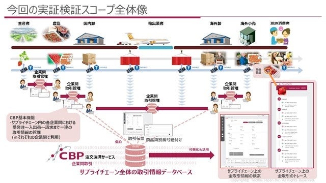 DXでつながる社会の未来を切り拓く株式会社テクノスジャパン(本社:東京都新宿区、代表取締役社長:吉岡隆、以下「テクノスジャパン」、証券コード3666)と、株式会社chaintope(読み:チェーントープ、本社:福岡県飯塚市、代表:正田英樹、以下「Chaintope」)による、テクノスジャパンが提供する企業間協調プラットフォーム「Connected Business Platform(略称:CBP)」と、Chaintopeが提供するパブリックブロックチェーンTapyrus(タピルス)を連携し、商流と物流を繋いだトレーサビリティの実現へ向けた検証の結果をご報告いたします。