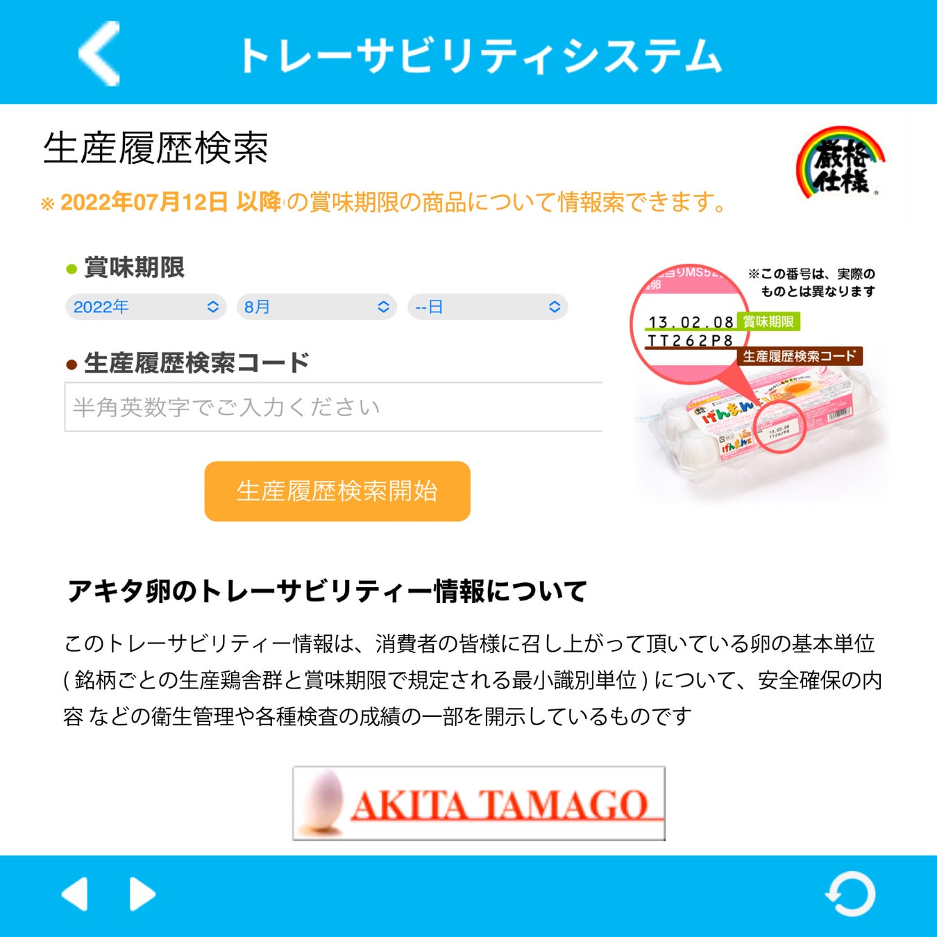 またアキタフーズは、日本で唯一の「完全直営一貫生産システム」と「アキタ式HACCPシステム」のもと、たまごの生産工程のすべてを記録したアキタフーズ独自の「トレーサビリティーシステム」を構築しています。