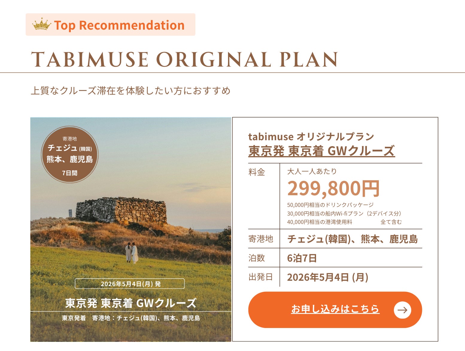 tabimuseプロデュースのオリジナルクルーズプランも販売を開始